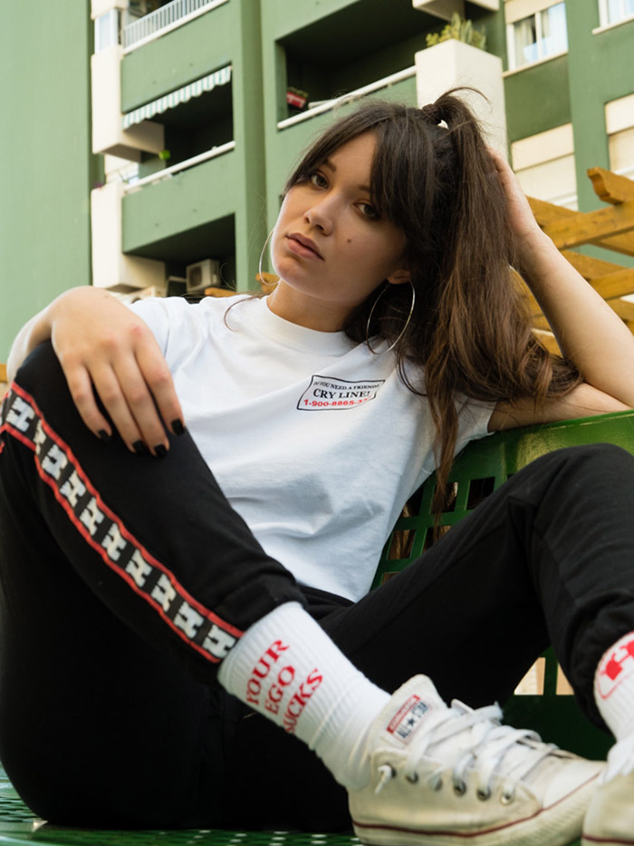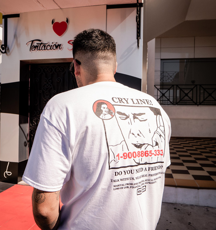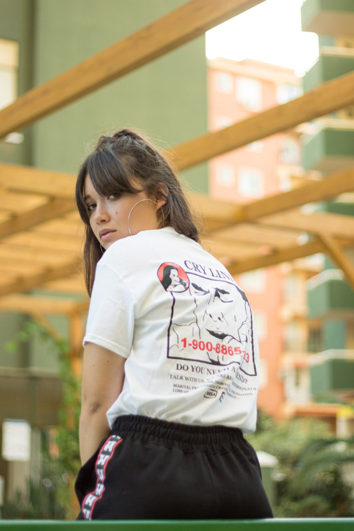 ¡Incluso proponiendo una lucha desde la moda! Eso es lo que debe pensar Juan Hurtado, el hombre detrás de Hurthado Clo’ cuya nueva colección se llama precisamente «Actual Facts» (es decir: «Hechos verídicos«). Es una colección en la que, como no podía ser de otra forma, vuelven a brillar todas las constantes del imaginario de esta firma: el cine, los años 90 y La Costa del Sol siguen siendo el triunvirato fundamental sobre el que se erige toda la colección, con el amplio componente de barrio del sur que todo lo dicho implica.