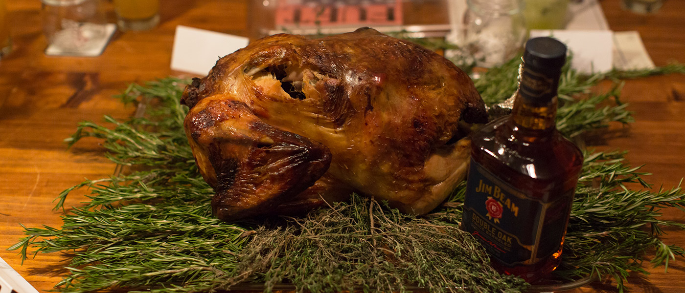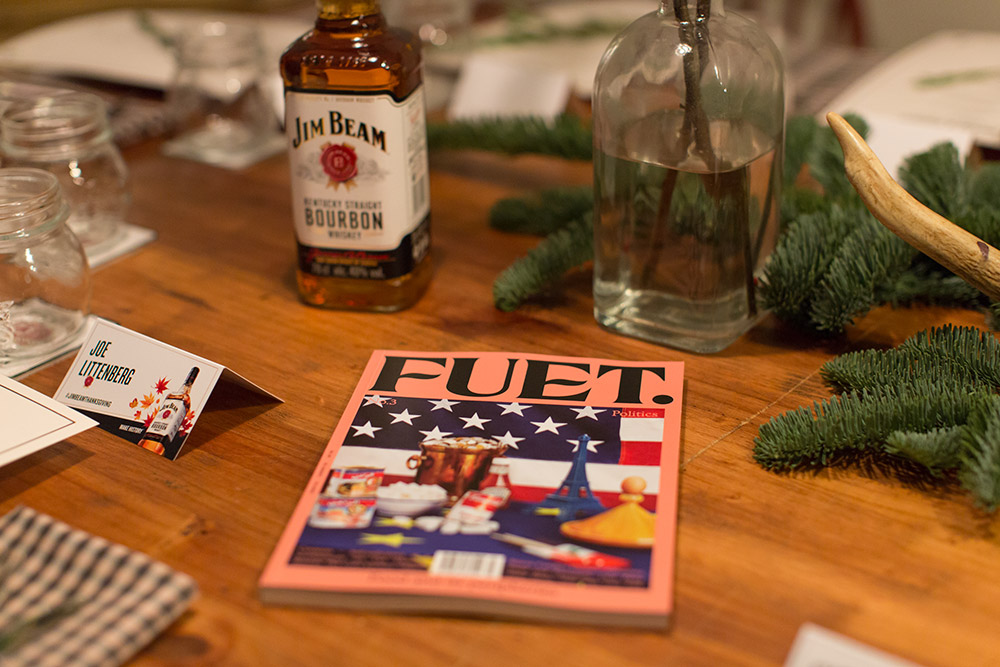 La cena de Thanksgiving pluscuamperfecta tiene que ser muy parecida a la que celebramos anoche en compañía de Jim Beam y la revista Fuet.