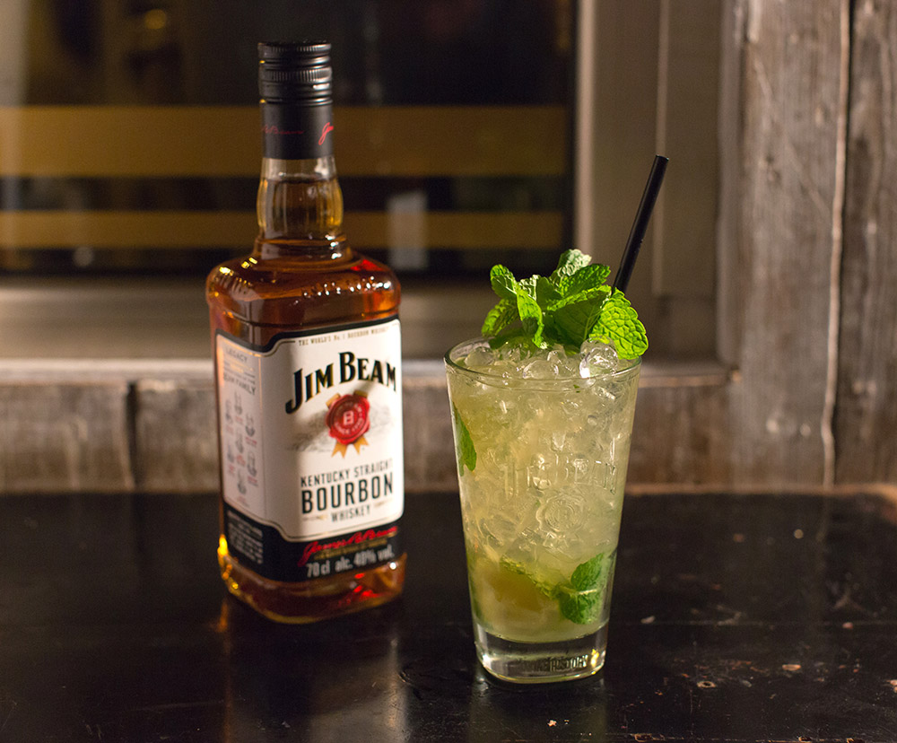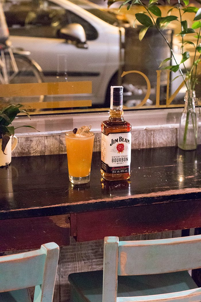 Y, claro, buena comida siempre tiene que ir acompañada de buena bebida. A este respecto, nada más elocuente que las preparaciones del coctelero Mauri Jiménez, embajador de Jim Beam, para ser maridadas con cada uno de los platos que nos iban poniendo delante. El cóctel de bienvenida (a base de Jim Beam Double Oak, que es un Jim Beam White Label que ha sido envejecido en una segunda barrica) ya he dicho que no podía ser más especial. Pero es que lo que vino después no tiene nombre: otro cóctel usando Jim Beam Apple que era como beberte el zumo de manzana que deben servirle a los dioses en el puñetero Holmes Palace del Olimpo; una revisión del mojito usando Jim Beam que me recordó por qué no suelen gustarme los mojitos pero por qué podría aficionarme perfectamente a esta nueva versión; y un trago largo final que acabó por demostrar lo que habíamos intuido durante toda la velada: que lo del Jim Beam es como la Santísima Trinidad. Es decir: es uno y a la vez es múltiple. Todo depende de cómo lo uses (o de cómo lo use un puto genio como Mauri).
