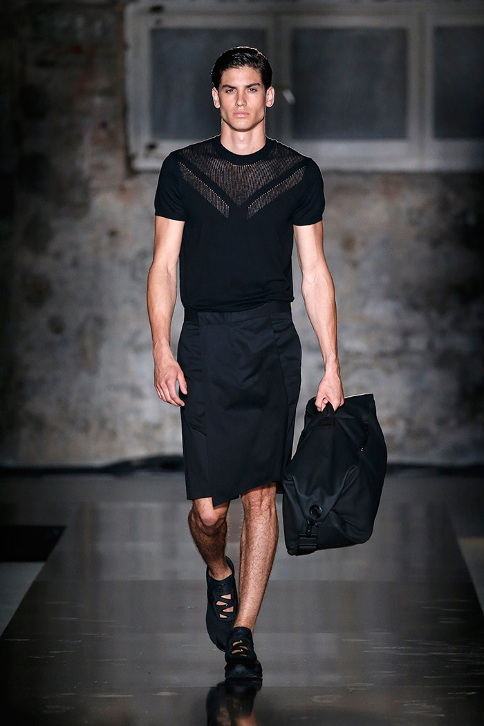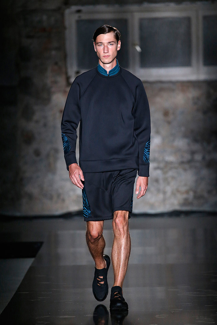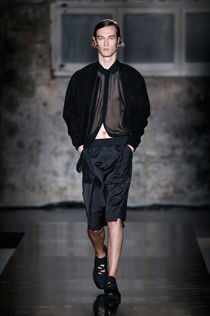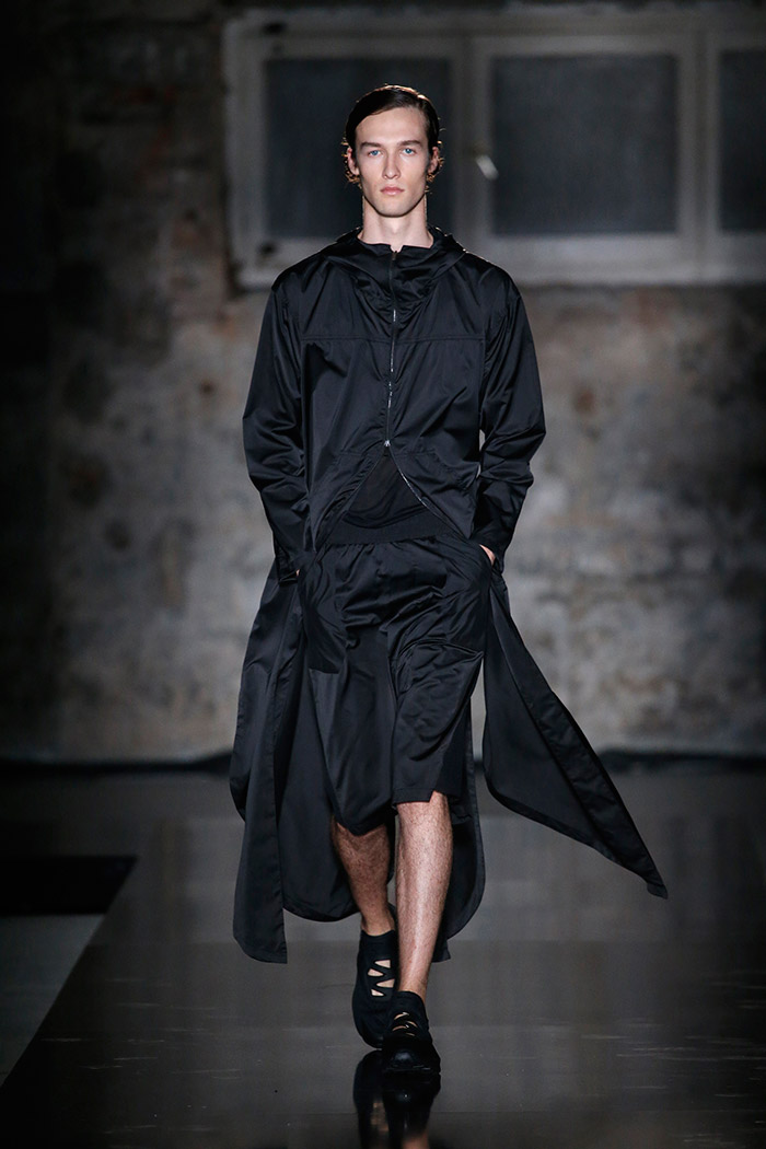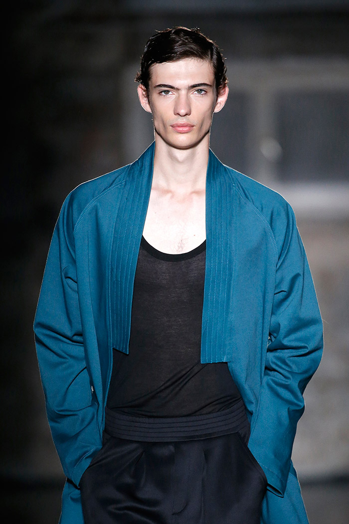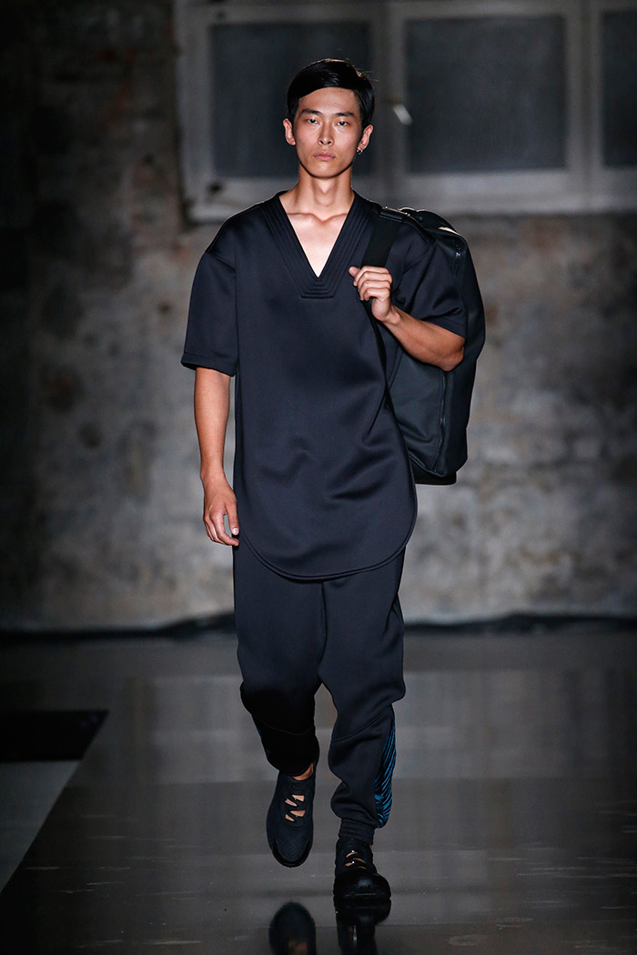 Al fin y al cabo, Javier Girón (que, por cierto, ha trabajado para otras firmas como Jeremy Scott, S. Oliver o Agi & Sam) declina el futuro con una visión de la moda masculina que desafía la tiranía de los géneros por la vía tanto de los tejidos (¡bien de transparencias y satenes!) como de las siluetas, con una gozosa profusión de escotes, cortes que dejan una gran cantidad de carne a la vista ¡e incluso crops! (Sí, ya sabemos que esta es la pieza más odiada de la moda masculina actual, pero hay que reconocer que JNORIG la aplica de forma mucho más que fetén.)
