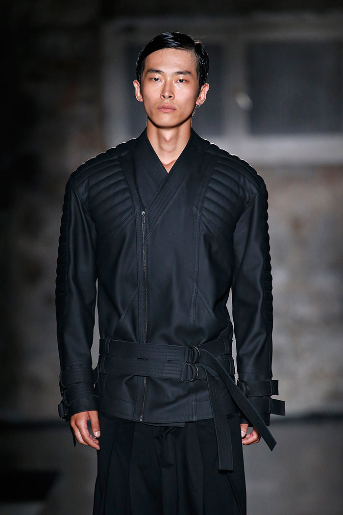 Habrá quien hable de amaneramiento, pero lo cierto es que eso sería corto de miras ante la verdadera jugada de JNORIG: sacar a la moda masculina del amodorramiento de sus propias formas, aunque eso pase por adoptar algunas siluetas que algunos (los que todavía vivan en el siglo XX) identificarán como femeninas. Porque, a ver, ¿qué tienen de femenino estos «Dos Mundos Opuestos» en los que se encuentran referencias estéticas tanto de América del Norte como de Asia entre los años 600 y 1200 DC?