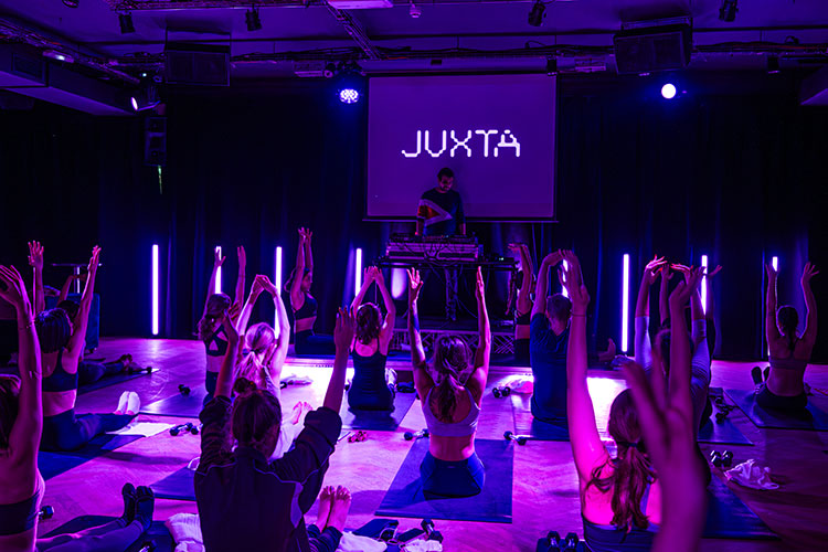 Y es que está probado y comprobado que escuchar tus temas y géneros musicales favoritos durante el ejercicio mejora tanto tu mood anímico como el goce del entreno. Respuesta emocional positiva, que se le llama. Y precisamente esta respuesta emocional positiva es la base de Juxta, una experiencia de fitness que se lanzó el pasado 23 de marzo en The Cover (Sir Victor), en Barcelona, con dos sesiones: una clase de cardio con musicón techno a cargo de DJ Lumiere y otra clase de fit flow en la que DJ Deiv se dedicó a mezclar temazos de jackin house.