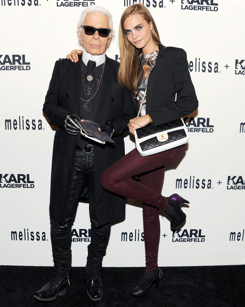Karl Lagerfeld no para. Él, que conoce los intríngulis del mundo de la moda mejor que nadie, sabe que cuando pones en marcha la maquinaria de una firma, esta no puede parar. Y desde que creó Karl se ha mostrado incombustible e incansable dando vueltas por el mundo presentando sus colecciones, abriendo tiendas y colaborando con todo aquel que se deje. Si no hace un mes que visitaba Paris para inaugurar una nueva tienda en Europa de su firma, la semana pasada estuvo en Nueva York para presentar la nueva colaboración must de este verano: la que le ha unido con la diseñadora de zapatos brasileña Melissa. La colección (que puedes ver al completo aquí) se presentó en sociedad y al mundo el pasado día 26 de marzo en la tienda que Melissa tiene en el Soho neoyorquino (aunque no se podrá comprar hasta el próximo mes de junio). Para mostrar los nuevos (y deseadísimos) zapatos a los asistentes, Karl diseñó junto a su musa Cara Delevigne unas imágenes a gran escala para pasmo de los asistentes y con las que consiguió dar la nota (como siempre hace, que para algo es Karl… y Karl es el mejor embajador de sí mismo que existe).