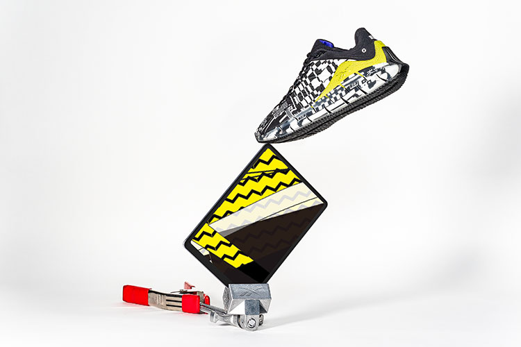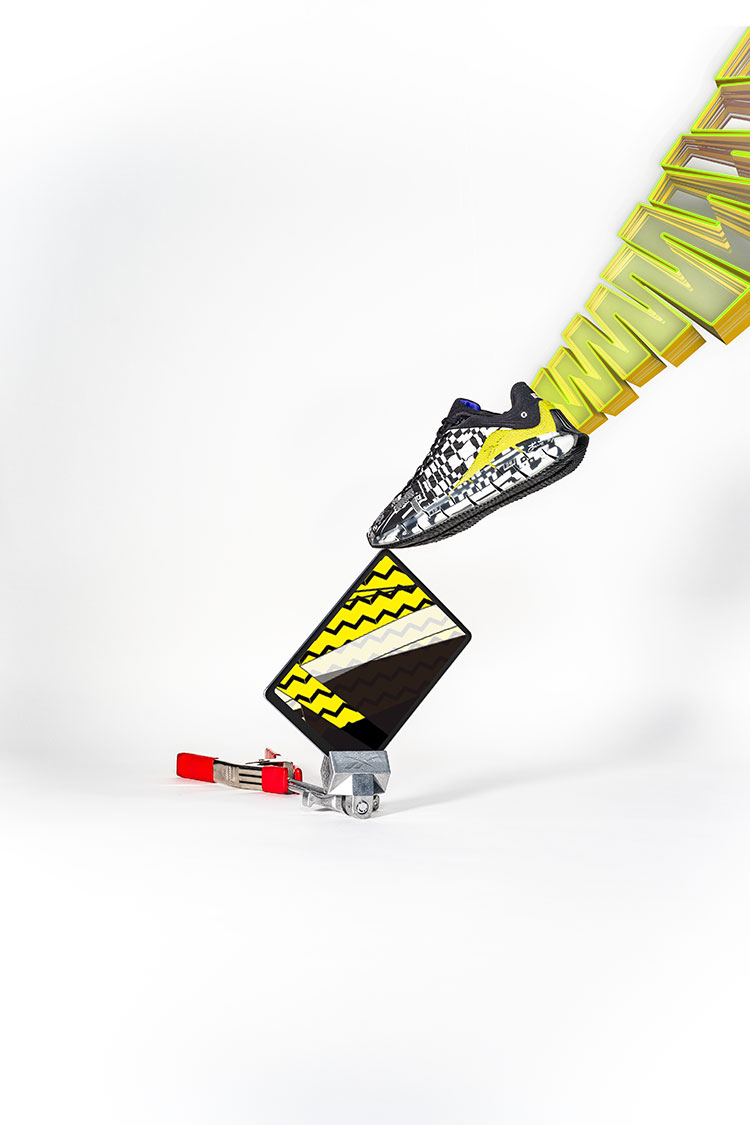De hecho, Kenzo vuelve a usar la misma paleta de colores (un impactante Black & White) para presentar una odisea surrealista de formas geométricas, esta vez atravesadas por una especie de onda en color amarillo bien vivo. Él mismo explica de dónde sale la Reebok Zig Kinetica x R58: «Se basa en una interpretación abstracta del tiempo y el espacio: cruzar barreras, ir a una velocidad vertiginosa, distorsionar el espacio, dar saltos dimensionales, etc. Mi intención era crear una silueta que de algún modo sugiera la impresión de una plataforma de lanzamiento y un cohete propulsor, los cuales están formados por una combinación de ondas sonoras, ondas sísmicas, patrones, señales y representaciones abstractas del tiempo y el espacio«.