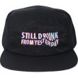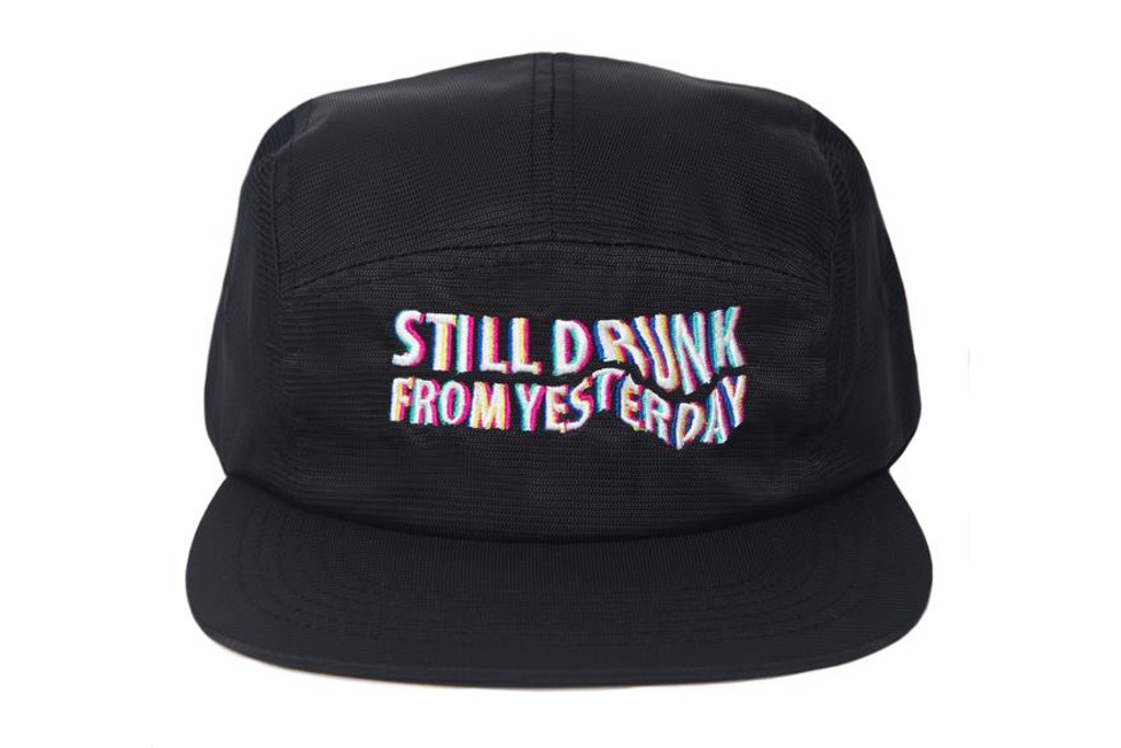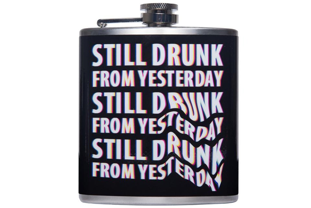Lo sorprendente esta vez es que muchos de los objetos de esta línea de merchandising realizan innumerables referencias a las drogas y el alcohol. Ahí está el ejemplo más claro de todos: el papel de fumar con la palabra LIT repetida en un patrón interminable. También hay otros objetos, mecheros e incluso una petaca que se dejan bañar por espirales tie-dye psicodélicas… A este respecto, la joya de la corona es la frase «Still drunk from yesterday» («todavía estoy borracho de ayer«) sobre algunos de los objetos de merchan, siempre con una silueta sinuosa que ejemplifica a la perfección la ebriedad absoluta y una resaquita buena.