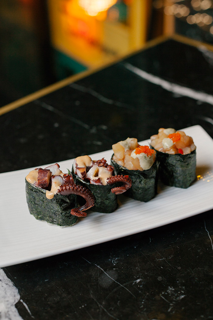 Y con esto pasamos, evidentemente, al Kokka. Y es que los nuevos toques peruanos que desde hace poquito tiempo están introduciéndose en la carta del Palosanto provienen precisamente de esta barra que viene a explorar algo realmente novedoso en Barcelona: el nikkei. Ya sabes: la mezcla de la gastronomía japonesa y la peruana. Esto significa que en la carta del Kokka vas a encontrar motivos para la sorpresa tan elocuentes como los ceviches (ya sea el clásico de corvina al aji amarillo con perlas de aji o el nikkei de corvina al rocoto y dashi), los tiraditos, los makis de pollo con mayonesa anticuchera, los nigiris de anguila con sansho o el temaki de spicy tuna con cebollino, pepino y germinado de sakura.