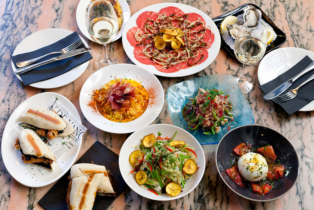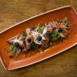 Vayamos por partes. Y empecemos por Palosanto… ¿Qué puedes esperar si decides hacer parada en esta taberna de tapas (o en su maravillosa terraza que da a la Plaza George Orwell)? Pues eso mismo: tapas. Ahora bien, lo que en otros lugares del centro de la Ciudad Condal se solventa a base de freidora rancia y salsa brava de baratillo, aquí se lleva a un nivel de alta cocina con creativos toques mediterraneos y peruanos. No te puedes ir de Palosanto sin gozar básicos enloquecedores como su versión de la bravas, las Ostras Gouthier nº3, la tortilla de patatas trufada a la minute con cebolla confitada, el ceviche de corvina, los guisantes con sepionetas, coco y un toque de anís… Y dos locurones muy bestias que hay que mencionar por separado, tal y como merecen. Por un lado, la gran especialidad de Palosanto: la carrillera de cerdo cocinada 36 horas con puré trufado, que es una preparación que se quedará en la memoria de tu paladar para siempre. Y un nuevo must: el carpaccio de ternera con salsa anticuchera Kokka.