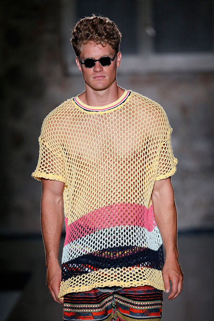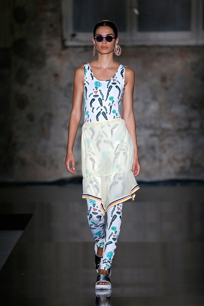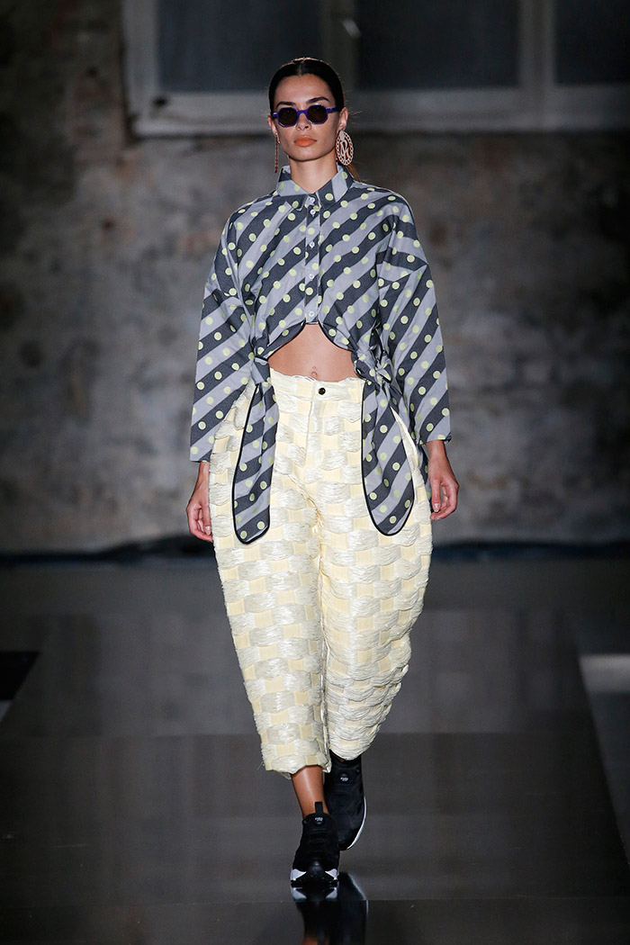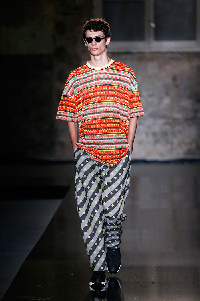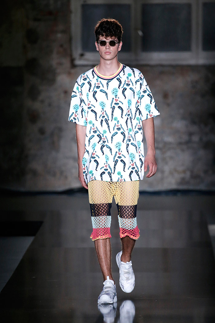 Supongo que a muchos les habrá ocurrido exactamente como a mi: justo antes del desfile de Krizia Robustella en el 080 Barcelona Fashion, bien sentaditos en nuestros sitios, hemos empezado a trastear el flyer que había en cada asiento y en el que se podía leer el nombre de la colección que estábamos a punto de presenciar. «Classy Jungle Brothers«. Espera, un momento, ¿»classy«? El shock es momentáneo: por mucho que con lo que identifiquemos inmediatamente a Robustella sea con el rollo street más irreverente, solo hay que hacer memoria para advertir que en los últimos tiempos ya ha abordado la clase en sus propios términos, ya fuera a través del pimp callejero de su colección «Black Street» o con el outfit de funeral multicolor y celebrativo en «Happy Ending«.