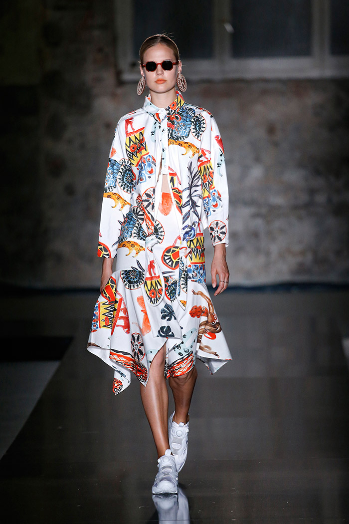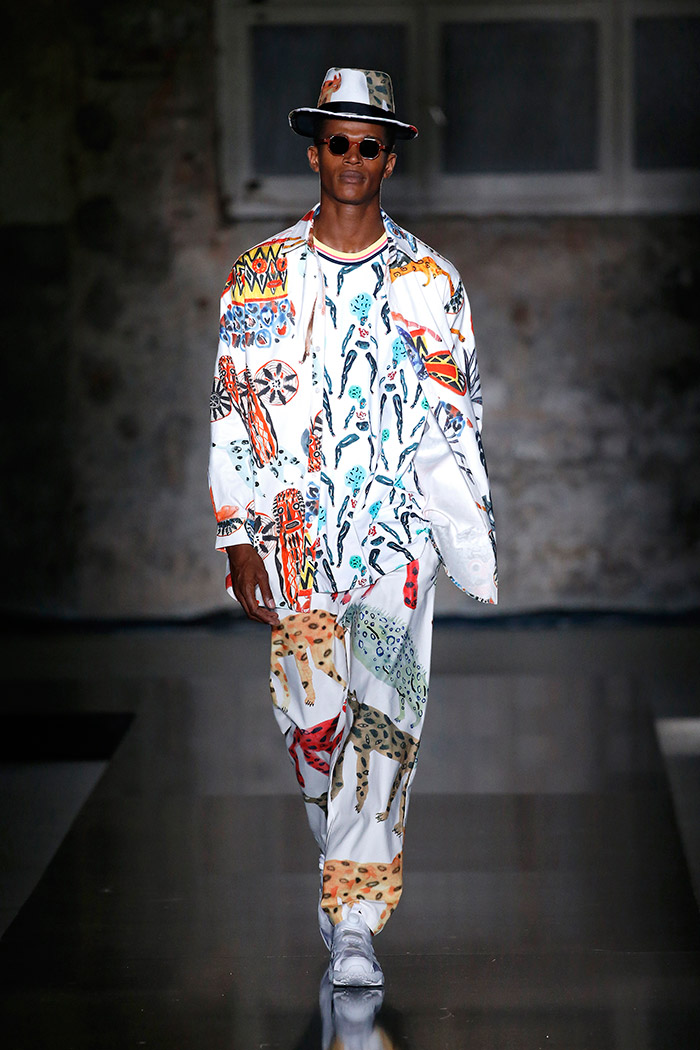 Todo ello, además, bañado por un buen puñado de las coloridas ilustraciones de Fati Morri y por una selección de tejidos entre los que brillan las rejillas y, sobre todo, la loca -casi esquizofrénica- suma de diferentes patrones en una misma tela que acaba siendo un canto de amor a la pluralidad y lo étnico. No es de extrañar, al fin y al cabo, que entre las influencias de esta colección, Krizia haya mencionado a los «sapeurs» congoleños que hace algún tiempo que nos tienen fascinados a todos. Aunque también hay que reconocer que esta es una referencia que se trenza a la perfección con el imaginario cada vez más amplio -aunque siempre igual de fascinante- de Robustella.