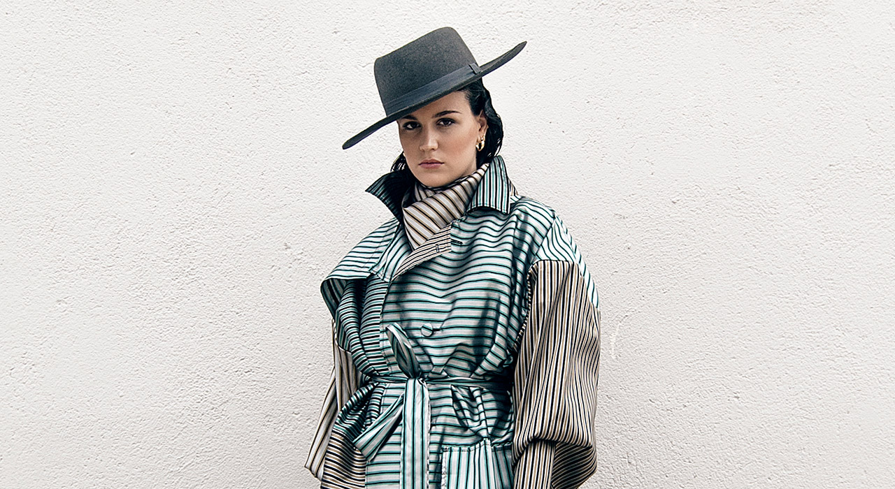 Resulta particularmente interesante la forma en la que la diseñadora aborda la volumetría complejizando los patrones habituales y, sobre todo, jugando con la dirección de las rayas en diferentes paneles que, al contrastar unos con otros, crean un impactante efecto 3D matizado un color blocking de tonos armónicos. Algo que puede apreciarse mejor todavía en unas fotos de campaña realizadas por Xavi Prat con estilismo de Manuel Bolaño.