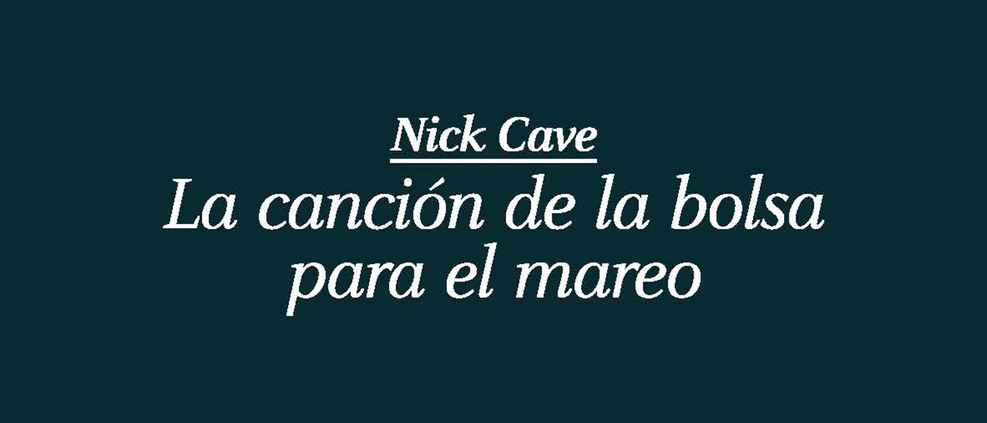 Así es como Nick Cave describe «La Canción de la Bolsa para el Mareo» al principio de este tomo editado en nuestro país de la mano de la editorial Sexto Piso. Pero lo cierto es que «La Canción de la Bolsa para el Mareo» es eso… y mucho más. Es, para empezar, un libro de formato libre -casi libérrimo- que ni se circunscribe ni se deja encorsetar en ninguno de los dos grandes formatos clásicos. ¿Prosa? Sí. En ocasiones el autor se desliza por la dulce pendiente de una prosa ágil y con un brío agresivo, violento. ¿Poesía? También. Es evidente que, para un cantautor como Cave, era inevitable que el virus de la poesía acabara infectando el cuerpo sano de la prosa.