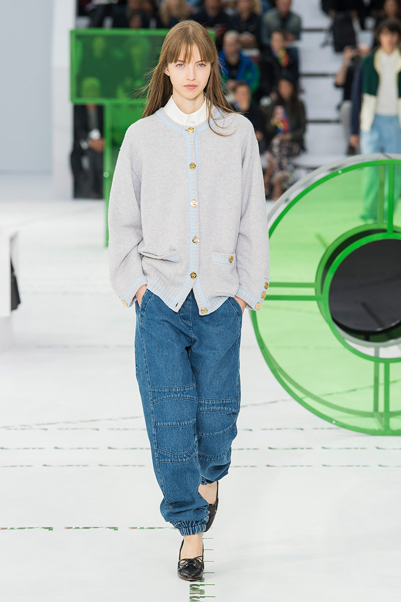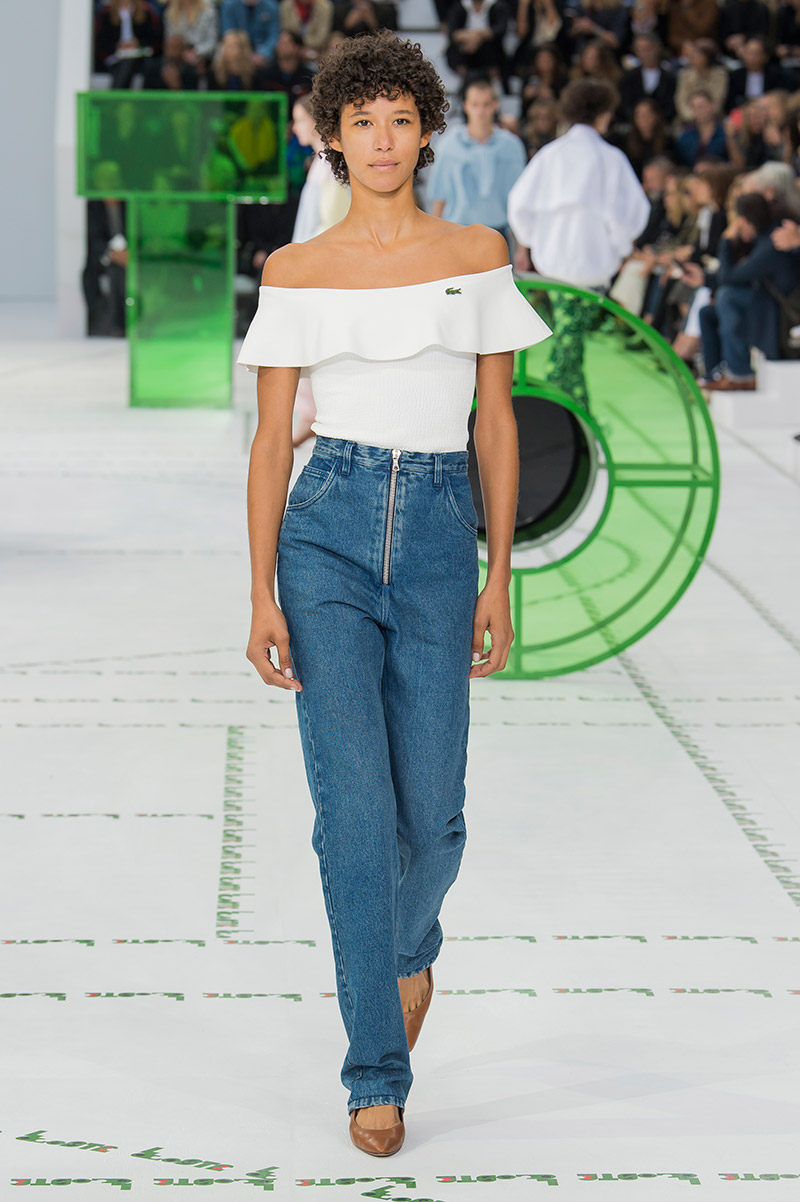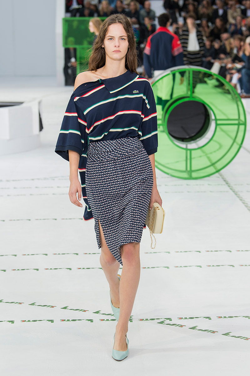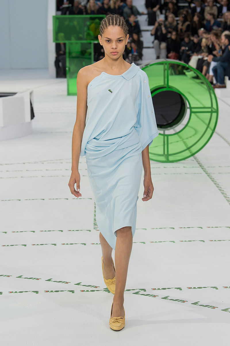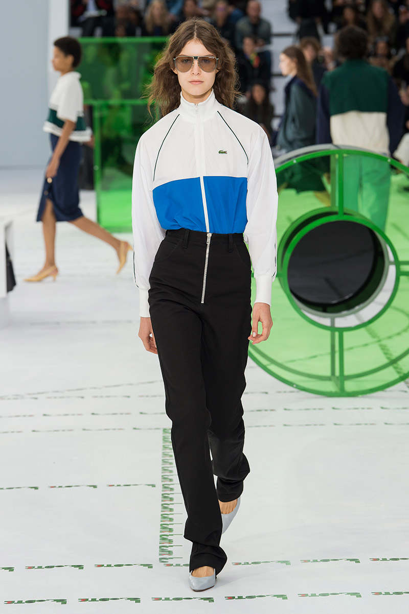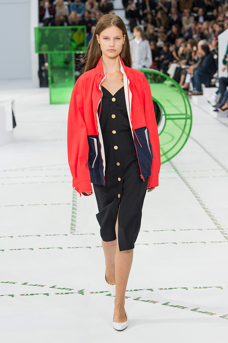 Dice el propio Felipe Oliveira Baptista que su nueva colección tiene dos influencias cinematográficas básicas: «El Odio» de Mathieu Kassovitz y el «Cuento de Verano» de un grande entre los grandes como Eric Rohmer. Puro avant-garde fílmico afrancesado que acaba teniendo su correspondencia fashionista en todo un conjunto de piezas que remiten a la estética francesa veraniega que tanto aprendimos a adorar con Rohmer (ahí está la omnipresencia del polo, los blazers, los rompevientos o la cintura alta tan años 30) pero en versión rupturista y con un toque barriobajero muy a lo Kassovitz (la prendas ostentan aperturas inesperadas y se aniquilan las siluetas tradicionales). ¿Cómo puede Lacoste tener 85 años pero mantener el espíritu visionario de los 18?