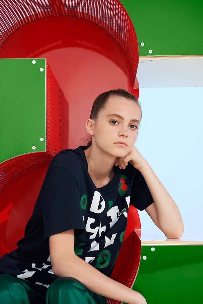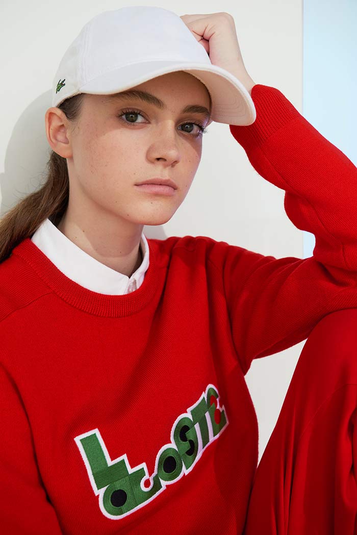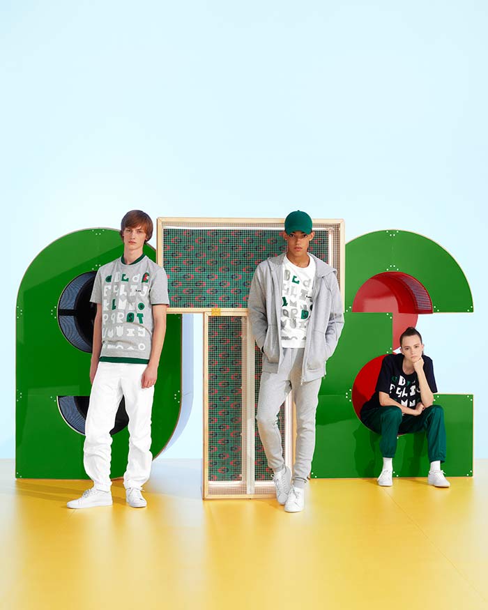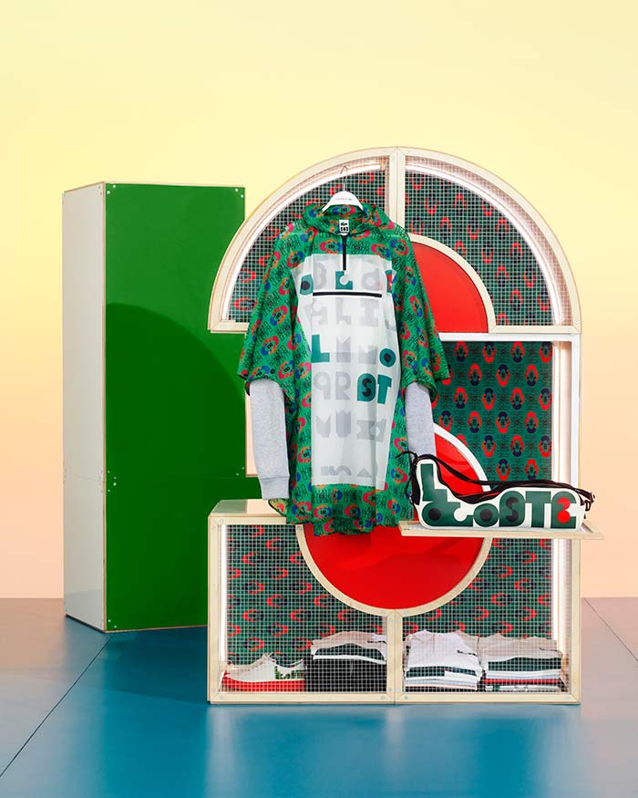 Así que imagina qué han hecho cuando Felipe Oliveira Baptista les ha puesto en el regazo el caramelito de hacer suya la imagen de Lacoste. Bueno, no hace falta que lo imagines porque puedes verlo en las imágenes de la galería al final de este artículo, donde brilla especialmente la transformación del archiconocido logo de la marca: M/M han conseguido evocar las formas del propio cocodrilo usando las propias letras de la palabra Lacoste. Una verdadera maravilla que aparece en la mayor parte de las prendas ya sea substituyendo el logo pequeño habitual en los polos o a mayor tamaño en la pechera de sudaderas.