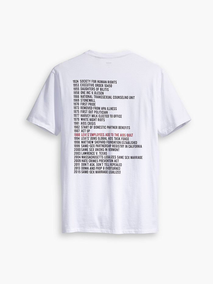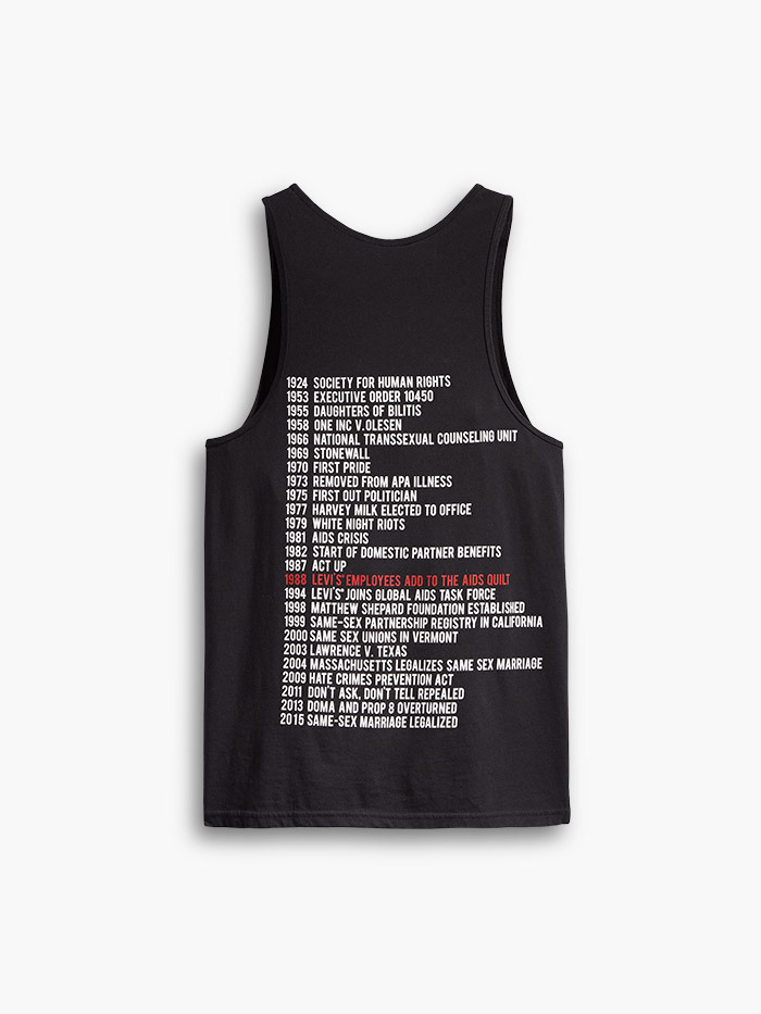 Y es que la causa gay lleva décadas firmemente ligada a Levi’s. Por poner un ejemplo: en el año 1987, se desplegó en Washington por primera vez en la historia el AIDS Memorial Quilt, que es un quilt con aportaciones diversas que siempre tienen en común celebrar la memoria de algún fallecido por culpa del sida. Un añito después, en 1988, los trabajadores de LS&Co. participaron por primera vez en este AIDS Memorial Quilt con un panel que recordaba a los amigos perdidos… Porque, al fin y al cabo, la lucha de la comunidad LGTBIQ está marcada precisamente por el estigma de la pérdida.