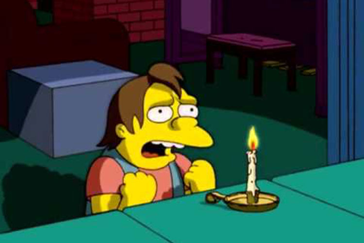 - Nelson Muntz en forma de María OT cantando “Amorfoda”