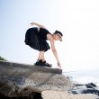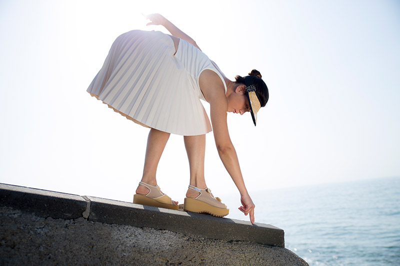 Y es que, al fin y al cabo, de magnetismo puro y duro hay que hablar cuando nos referimos a esta «ACTONE» que recoge piezas de Andrea Viêntëc, De Ubieta y Duoh y las hace brillar en un entorno playero y costero en el que se palpa el sol y el talante barcelonés. El blanco y el negro son los colores protagonistas que contrastan contra los intensos colores del poderoso paisaje veraniego, encarnando sobre el cuerpo de Anna Perez Moya algo así como ese ideal estival que todos tenemos en la cabeza (ya sea para vestirlo… o para compartir con ella nuestras vacaciones).