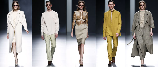 Sobria y mecánica, así se desveló la colección de invierno de la joven diseñadora catalana (una de las grandes promesas de nuestra moda, por otra parte). Jugando con texturas y formas muy contrastadas su intención era mostrar una colección con un marcado espíritu «vintage y cálido», que se adaptaba al cuerpo con líneas rectas y algún que otro volumen que favorecía el movimiento. La colección se componía de paños de doble cara (de ahí lo del espíritu calentito), cuadros en lana rígida, nylons, cashmere enfieltrado y piel tratada con diferentes técnicas de estampación. Los colores fueron tres básicos: el blanco nuclear, el petróleo y el verde aceite, lo que le daba a la paleta de colores un aire industrial que, unido a las formas robóticas de las prendas jugaban a una mezcla futurista.