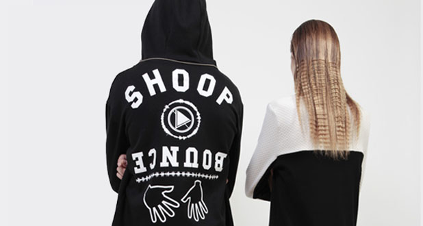 «Bounce» significa rebotar, ir de un sitio de a otro, de aquí p´allá. Los chicos de Shoop, Miriam Sanz y Yohei Oki, se inspiran para sus colecciones en todo aquello que les rodea en su día a día, principalmente la música (sobre todo el hip hop de los años 90) y la cultura street. Para ellos (igual que para esta web) la música y la moda son dos factores que se retroalimentan y que en los últimos tiempos, gracias a internet, te llevan el uno al otro y viceversa. Con su nueva colección han dado un paso más allá y han querido trasladar el concepto a la ropa y las protagonistas de sus nuevas prendas son las ondas de Soundcloud de una canción de Justin Timberlake visualizada digitalmente y loopeada. Bitch, whaaat?? Pues eso.