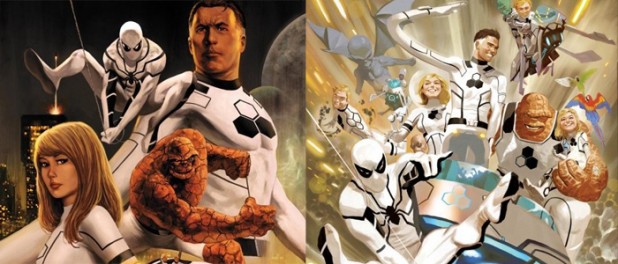 Algo se muere en el alma cuando un amigo se va… Sí, eso lo tenemos todos claro. Pero también es muy cierto que nada dura para siempre y que los aires de cambio deben ser más que bienvenidos en un mundillo como el de los superhéroes, demasiado tendente a quedarse anquilosado en sus argumentos megalomaníacos que no funcionan a base de tramas cerradas, sino por la vía del alargar las aventuras cuanto más mejor. Los últimos en verse afectados por esta voluntad de ruptura dentro de Marvel (editorial que, de vez en cuando, se aficiona a pegarnos sustos de muerte) son un grupo de superhéroes mítico: Los Cuatro Fantásticos. No hace demasiado ya se anunció que uno de sus integrantes moriría, y el (des)afortunado ha sido, finalmente, La Antorcha Humana. Ahora bien, una baja siempre ha de suplirse con una nueva alta, y en esta ocasión es más que sorprendente: Spider-man se unirá a un grupo dejará de llamarse Los Cuatro Fantásticos para reinventarse en la Future Foundation (¿Fundación del Futuro? ¿Fundación Futura?) y vestir unos nuevos trajes que pierden el azul clasicorro para abrazar el blanco y negro e incluso un nuevo logo que abandona el número 4 e instaura tres hexágonos. ¿Raro ver a Spider-man como parte de un grupo que le impone incluso un nuvo uniforme? Pues sí. Raro, raro, raro.