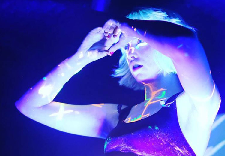 Cada noche pinto mi cuerpo entero con pintura fluorescente para que se vea luego con la luz negra. Al final, siempre acabo en la cama durmiendo todavía con la pintura brillante. Las noches se alargan siempre, y están plagadas de aventuras. Me encanta pensar que estoy dejando tras de mí un rastro de neón manchando todas las sábanas de las camas de cada hotel por los que paso.