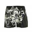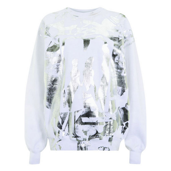 Con un aire muy street, ponible y que fácilmente provocará en las compradoras la irresistible sensación de «mierda, lo quiero todo«, el diseñador apuesta fuerte por ese rollo pijopunky que tanto vamos a ver esta temporada, pero le da un giro aplicándole brillos y metalizados a gogó. Las líneas son simples (vestidos asimétricos, camisas, pantalones de pitillo, shorts de cuero) pero se visten de un sugerente brillibrilli en color plata. El resultado es bastante molón e impactante con esos salpicotes de pintura y esa gráfica de grupo metalero de tres al cuarto, así que solo nos queda cruzar los dedos para que esta colección cápsula llegue a los Topshops de nuestro país y no solo se venda en ese Xanadú de la moda low cost que es su flagship store de Oxford Street.