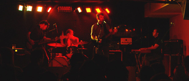 Había ganas de ver a Maga… Se notaba en el ambiente de la pontevedresa Sala Karma. Los sevillanos (impermeables a los cambios en su alineación) poseen una trayectoria discográfica fecunda y consolidada que, cumplida una década desde la publicación de su álbum de debut, “maga (blanco)” (Limbo Starr, 2002), continúa atrayendo. Por otro lado, tampoco es habitual contar con su presencia en los escenarios gallegos, con lo que se daba la situación ideal para que la banda liderada por un Miguel Rivera en plena forma fuese arropada apropiadamente. Aún así, el centenar de personas que respondió a la llamada del cuarteto hispalense se hizo de rogar y, como suele suceder en toda fiesta, tardó relativamente en entrar en calor. Se habría podido entender si el tono pausado de la inicial “Swann” se hubiese impuesto a lo largo de la velada, pero el show no iba a discurrir por ese camino. Al contrario: en cuanto cuajó el arrebato eléctrico de “De Memoria”, Maga comenzaron a transmitir toda la energía envasada en su último trabajo, “Satie vs. Godzilla” (Mushroom Pillow, 2011), canalizada a través de una briosa “Hagamos Cuentas”.