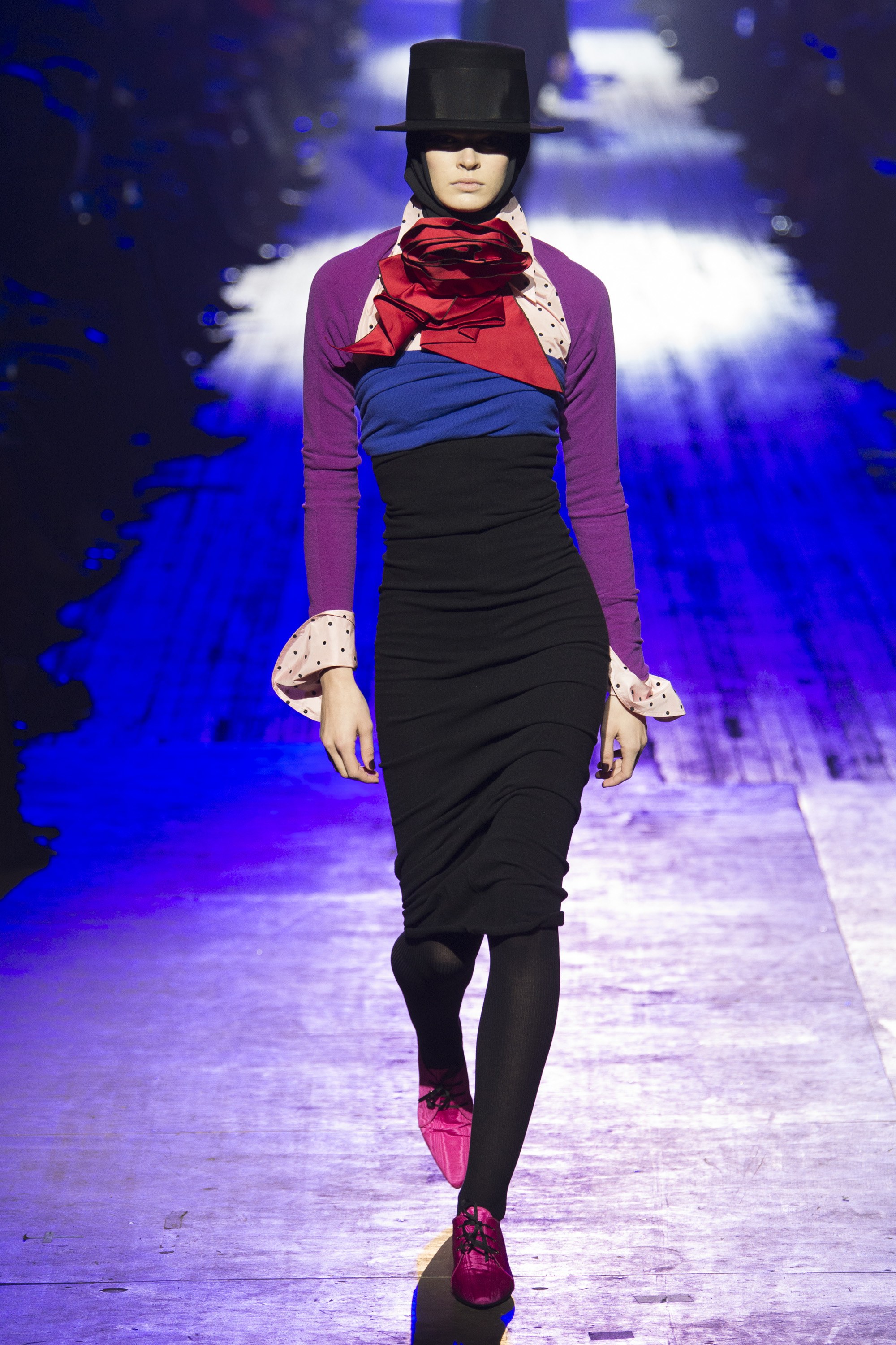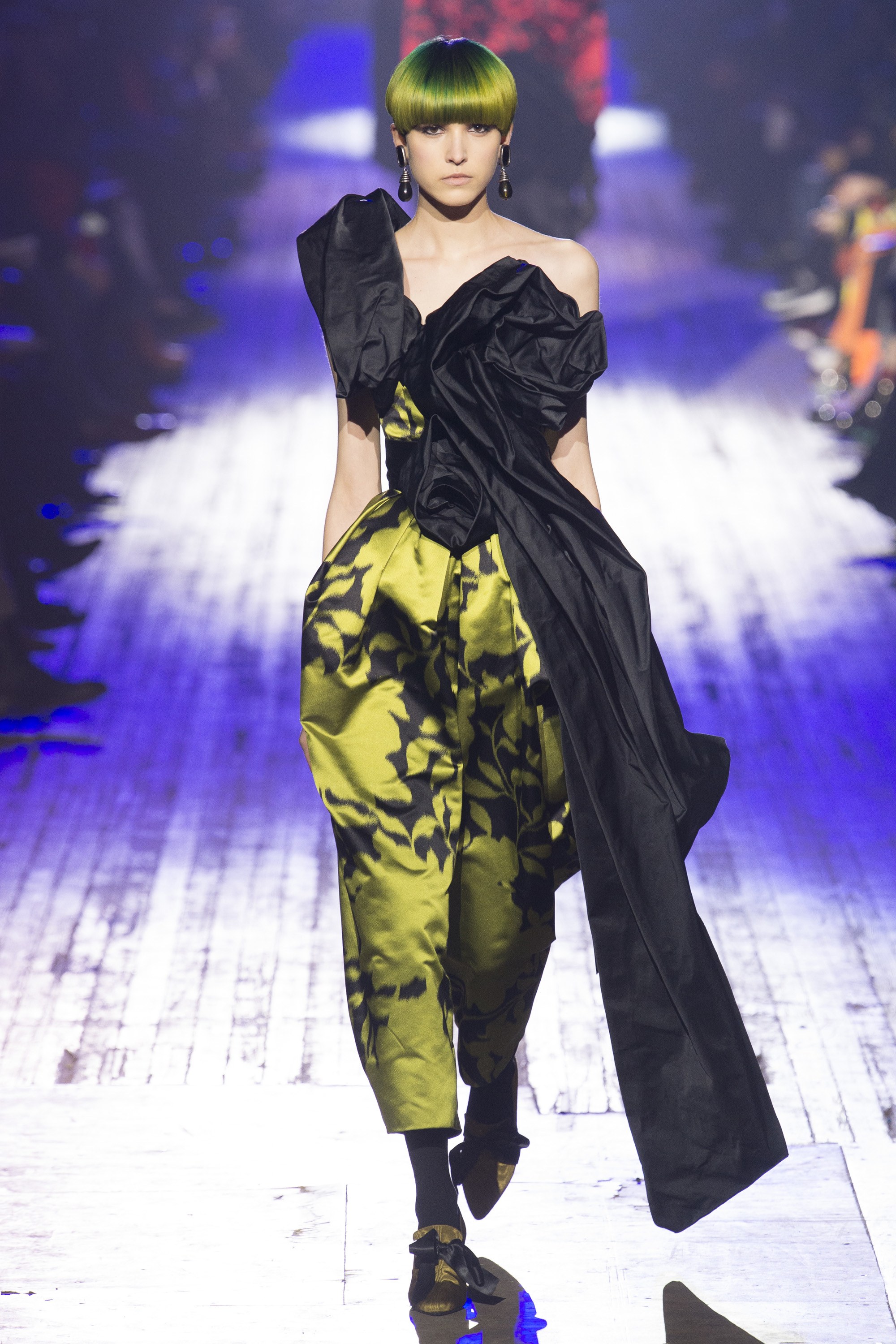 Todo eso, evidentemente, está más que presente en la nueva colección de Marc Jacobs. Aunque hay que reconocer que lo vibrante de esta revisión ochentera por parte del diseñador es que la ha llevado al terreno del maximalismo puro y duro que tanto juego nos está dando en el siglo 21. Las alucinantes gabardinas, por ejemplo, se hacen gigantescas y actúan más como armadura que como prenda. Los volúmenes se subliman e incluso erupcionan en volubles floripondios que, de nuevo, atentan directamente contra la silueta femenina a la vez que la bañan de una nueva sensualidad desafiante.