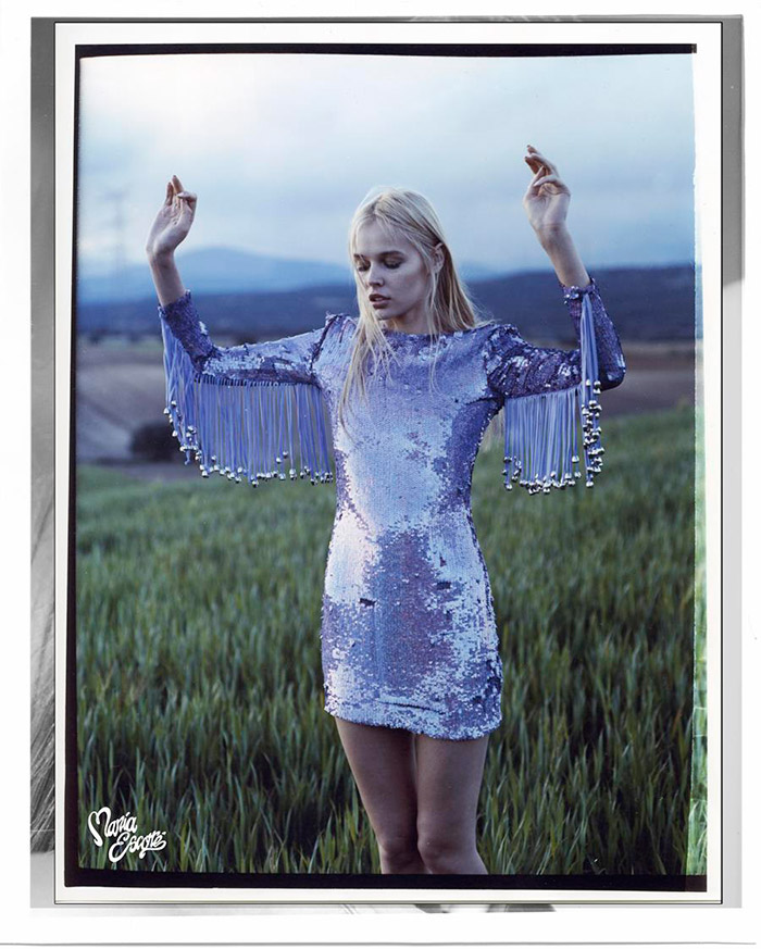 Todo lo dicho se traduce en un conjunto de piezas claves en las que las margaritas se convierten en lo único que viste la piel, dejando grandes espacios de desnudez ya sea en forma de micro-top o vestido. En las imágenes de campaña, fotografiadas por Mario Chavarría como siempre que se trata de María Escoté, se encapsula a la perfección el feeling ravero al aire libre con cielos azules y grandes extensiones de hierva verde sobre la que pacer mientras el musicón fluye por el interior de tu cuerpo. ¿Alguien dudaba que ya hemos empezado la temporada festivalera?