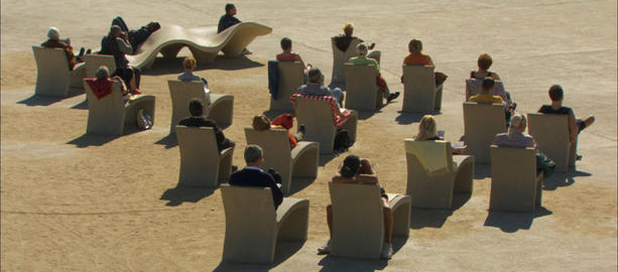 Una de las películas más esperadas de L’Alternativa (uno de los festivales más longevos de la ciudad de Barcelona pese a carecer de una hoja de ruta clara (nunca he sabido muy bien qué tipo de cine engloba la etiqueta “independiente”… ¿independiente de qué?) fue la nueva pieza documental de Mercedes Álvarez, «Mercado de Futuros«, que ya pudo verse en la pasada edición del casi difunto (pero no, ¡afortunadamente!) Festival Punto de Vista en noviembre. Álvarez ha elaborado esta pieza de forma totalmente artesanal, meticulosamente rodada durante casi tres años, ya que empezó a gestarse al poco de estallar la madre de todas las crisis. Con planos precisos como un reloj suizo nos muestra una perspectiva aérea de la mecánica del capitalismo, mediante piezas que, como los pedazos de un patchwork, nos dan una visión global pero fragmentada. Como estas mantas de dudoso gusto, o como si de un jarrón roto y vuelto a pegar se tratara, el conjunto en sí resulta algo defectuoso pero no por ello desaconsejable. Al contrario… Y más viendo dónde nos encontramos ahora mismo.