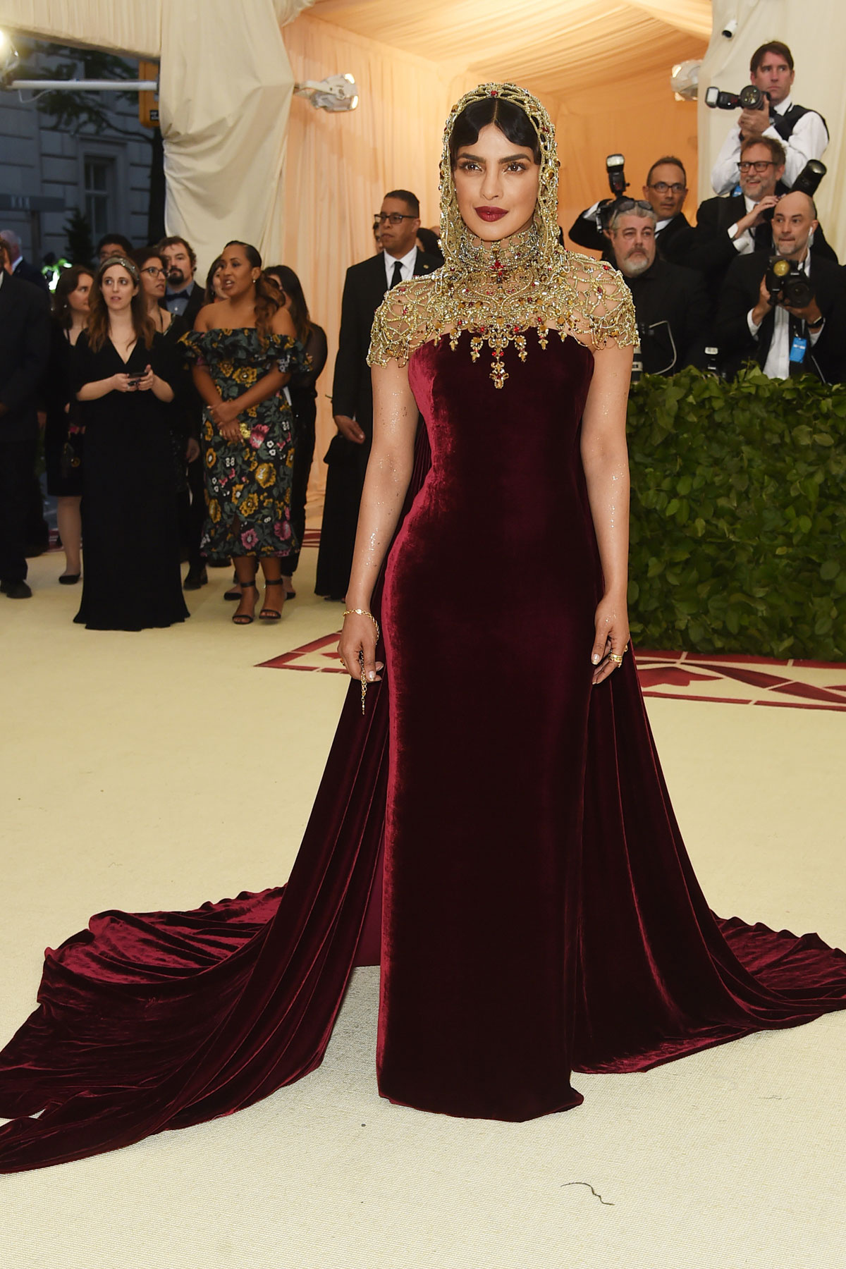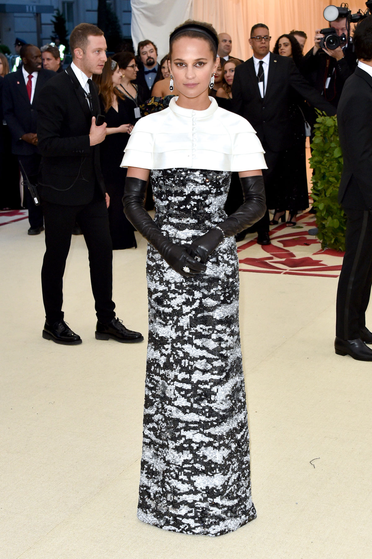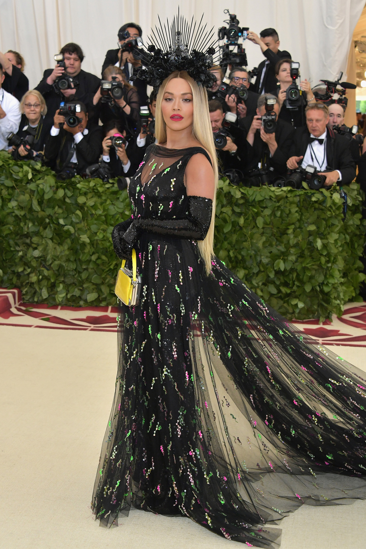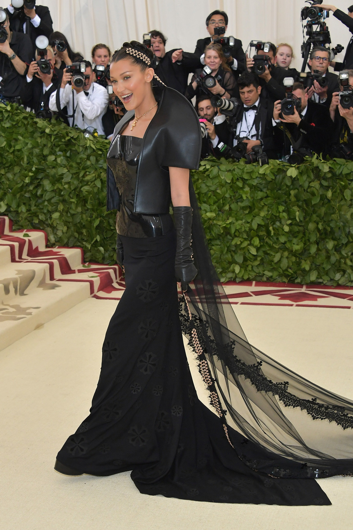 El pecado más común de todos es, de hecho, el exceso… Y de eso han pecado precisamente Donatella Versace (que tan bien ha vestido a otros y, sin embargo, ha decidido pornerse unas botas hórridas que parecen salidas del peor capítulo de «RuPaul’s Drag Race«), Sarah Jessica Parker (Dolce & Gabbana) luciendo una procesión en la cabeza, Emilia Clark con un Dolce & Gabbana que es way too much, Jennifer López en un Balmain que molaría si no fuera por la cola de plumas que no pintan nada ahí, Madonna en un Jean Paul Gaultier que confunde la «gótica realness» con el catolicismo, Juliette Binoche enfundada en su particular muerte por dorados, Salma Hayek diciendo que lleva estampado el Paraíso cuando en verdad lleva estampado el cuadro que todas nuestras abuelas tienen en sus salones, Lena Dunham con un maquillaje que tiraba al traste un vestido más que aceptable, Shailene Woodley cagándose en Zendaya al ver que su Juana de Arco parece un disfraz, Stella Maxwell (Moschino) con demasiadas vírgenes encima, Susie Bick (Gucci) como La Dama de las Espinas y Taylor Hill con un disfraz de obispo sacado de la sección «secretarias cachondas» del Party Fiesta.
