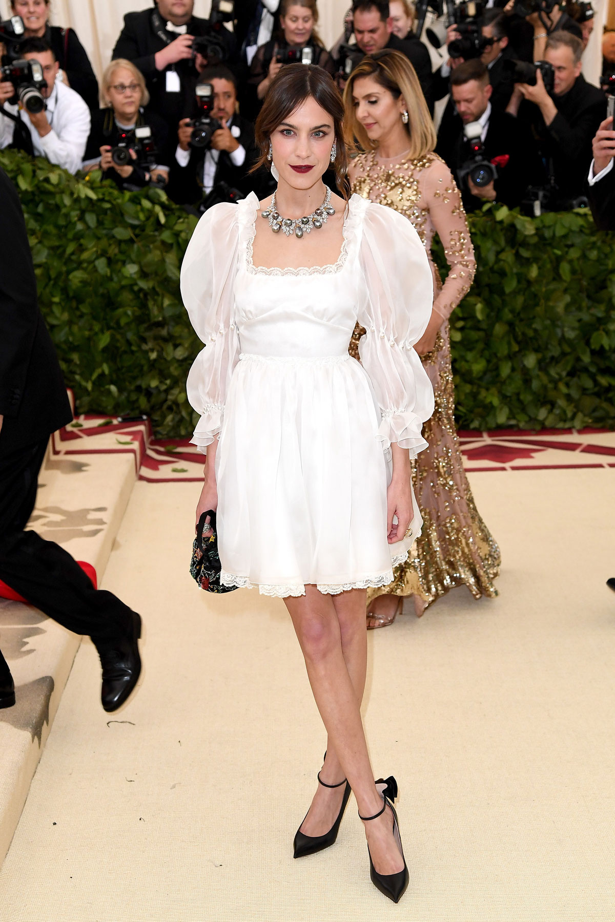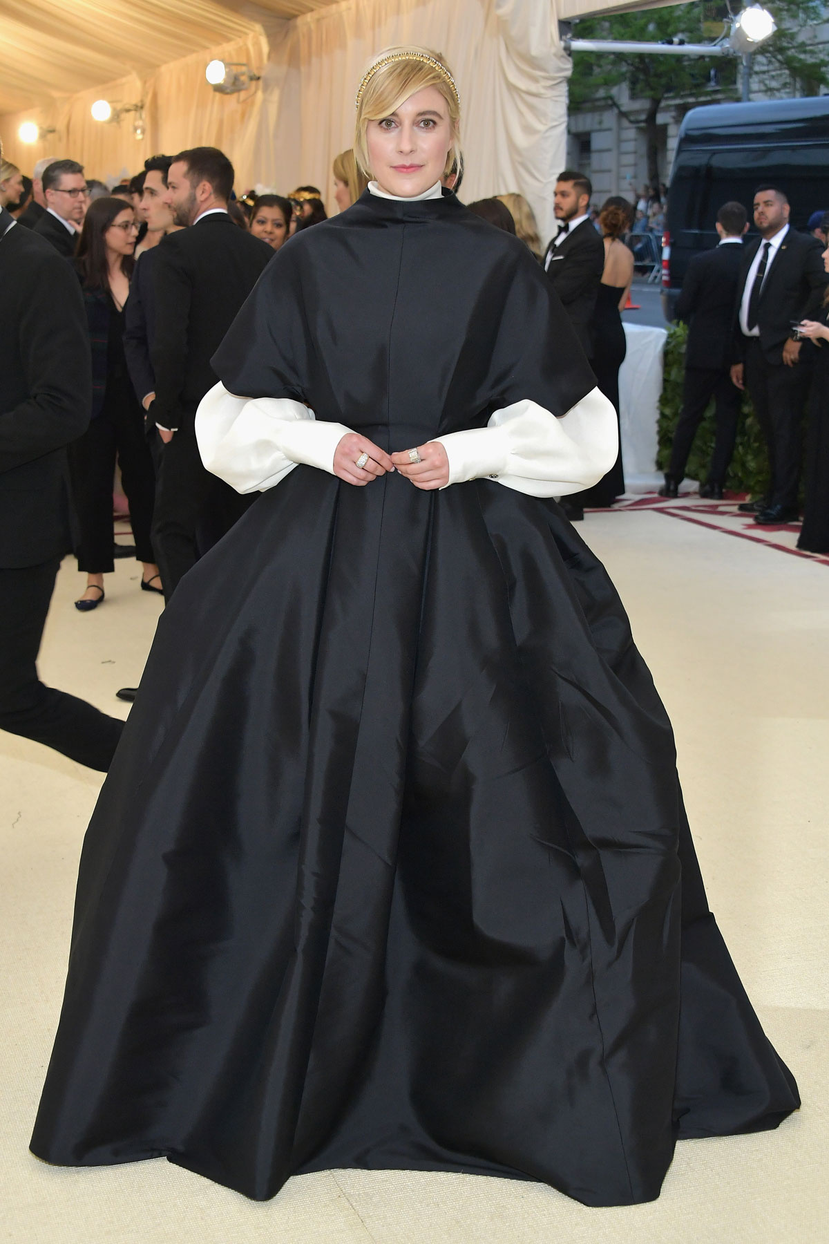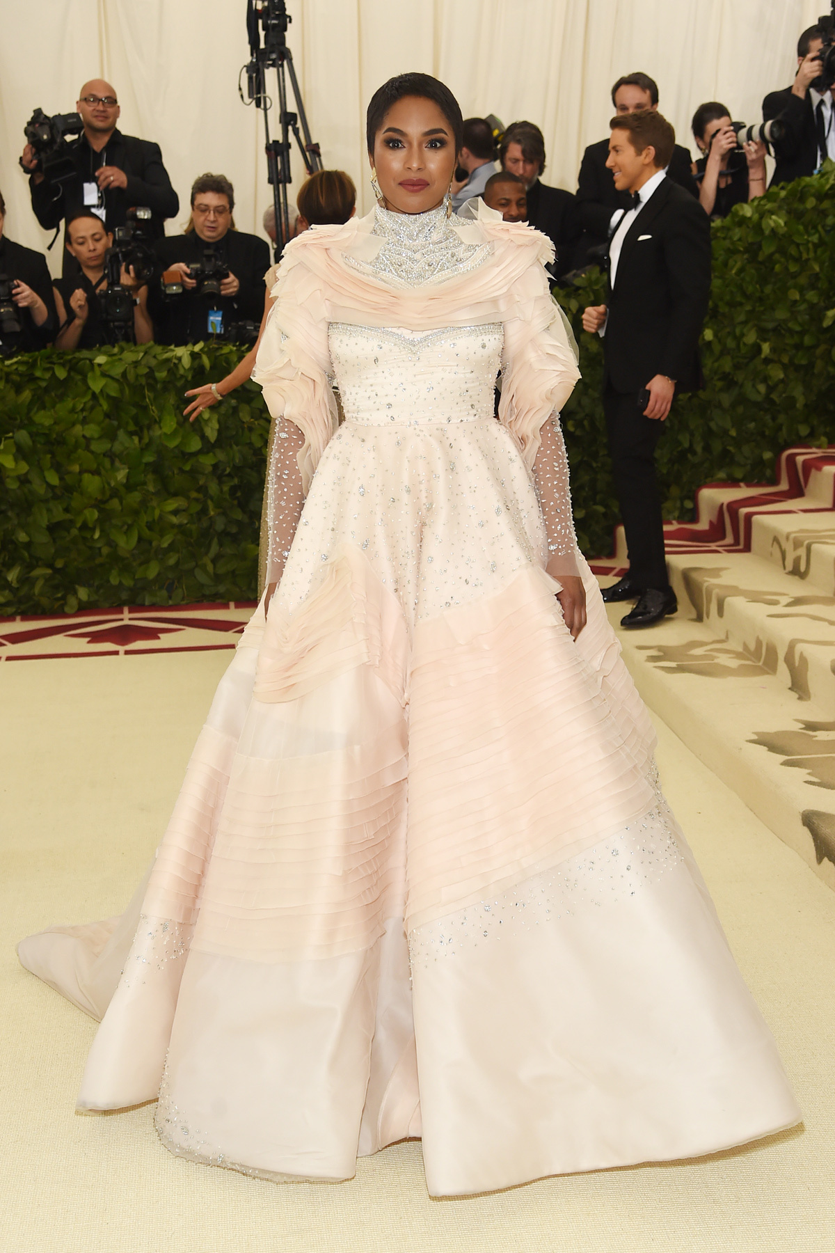 En el camino de la contención y la humildad hay que admirar a Anna Wintour y su ascetismo según Prada, Amal Clooney con un vestido de Richard Quinn que marcó una de las tendencias de la noche (las faldas traseras dejando las piernas al aire), Diane Kruger la cantidad justa de detalles de oro sobre su alucinante Prabal Gurung, Iman Hamman exhibiendo un vestido en el que Zac Posen maximaliza los cortes monacales, Lily Collins con un Givenchy que le da la vuelta al look monja, la diseñador Misha Nonoo luciendo un vestido propio con un cuello que personifica pura vida de convento, Rosie Huntington-Whiteley oficiando de aparición mariana según Ralph Lauren, Sza con uno de los Versace más contenidos de la noche y una Winnie Harlow que supo personificar el blanco virginal de forma pluscuamperfecta.