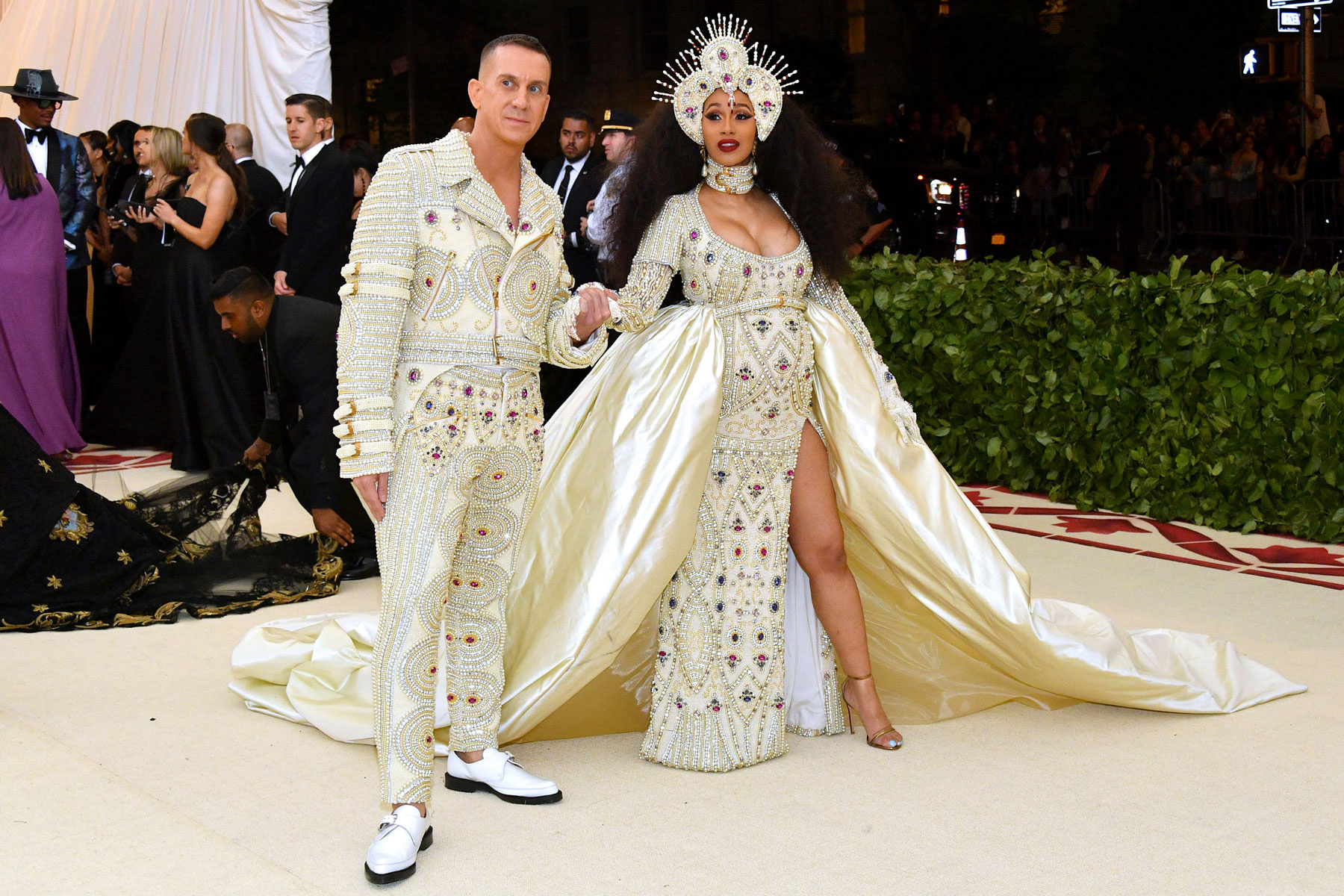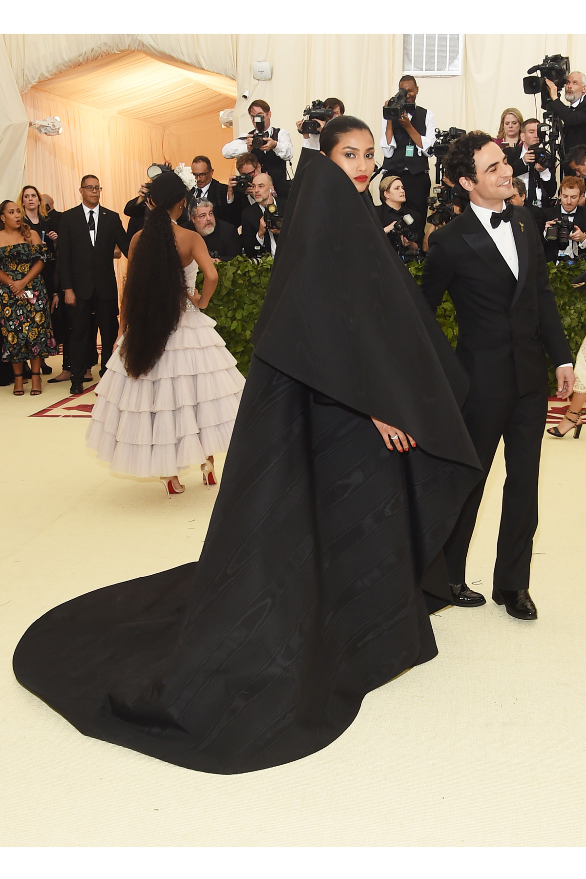 Centrémenos, sin embargo, en la cremita de esta MET Gala 2018, en la que no han faltado habituales como la Papisa Rihanna vestida por Maison Margiela, Cara Delevingne sirviendo «confesionario realness» by Dior, Gigi Hadid con un vestido de Versace inspirado en las vidrieras de las catedrales, Cardi B robándole un vestido -de Jeremy Scott– a la Virgen del Rocío, Evan Rachel Wood luciendo una capa de plumas doradas de Altuzarra, Katy Perry obligándole a Versace a marcarse unas alas de ángel (que, oye, si hubieran sido pequeñitas, hubieran resultado cutres, pero ¿se puede ser más fuerta?), Blake Lively con la mejor cola de la noche (de Versace, claro), Solange como arcángel negro según Iris Van Herpen o Juana de Arco reencarnada en Zendaya vestida de Versace. Ah, claro, y ese trío formado por Alessandro Michele, Lana del Rey y Jared Leto, todos de Gucci, que parece que acaben de ganar el primer premio en los carnavales de Sitges.