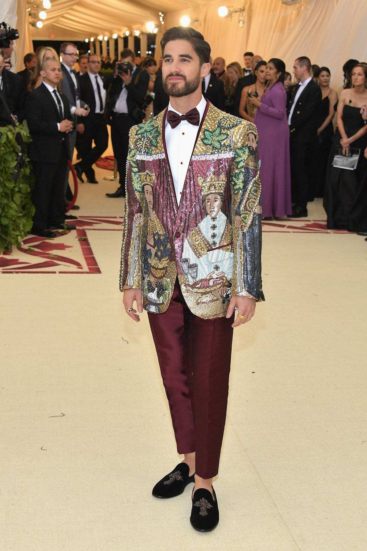 PURGATORIO. No vamos a detenernos demasiado en el Purgatorio porque, mira, es que está demasiado atiborrado. Solo haremos algunas menciones… para bien o para mal. Para bien, en el lado de aquellas que casi casi casi entran en el Paraíso, hay que contar al print angelical de Ariana Grande (Vera Wang), la chaqueta fuertísima de Darren Criss, el blanco virginal de Kendall Jenner (Off-White) o la cota de malla de oro en la cabeza de Priyanka Chopra. Y, en las puertas del Infierno han estado Janelle Monáe, Laura Love (Versace), Tabitha Simmons y, sobre todo, la crew Saint Laurent, que iba monísima toda acompañada por Anthony Vaccarello pero que, mira, es que no tocaba, chiquis. La temática es la temática.