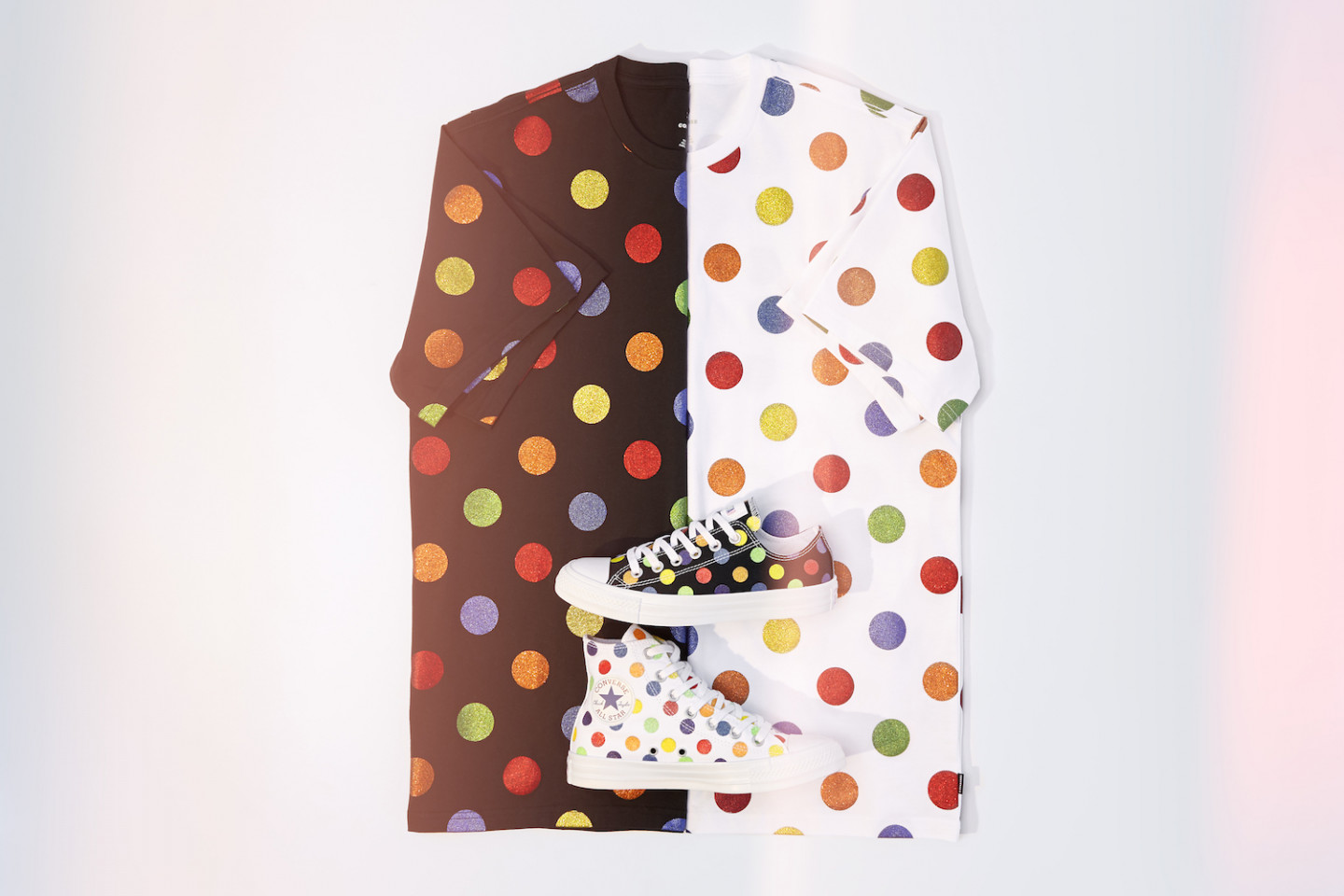 Así que aquí estamos, con la segunda colección que Miley Cyrus crea para converse con la idea en mente de festejar el Orgullo LGBTIQ tal y como se merece: con un buen chute de colorinchis y positividad y alegría. Estos valores tan abrazables vienen esta vez encapsulados en todo un conjunto de prendas de ropa y zapatillas que parten del color blanco, siempre tan neutro, siempre tan lienzo, para pintar sobre él una viva paleta de colores que aparece aquí en forma de arcoíris, como estampado de lunares o cada color sobre una de las letras de la palabra Converse.