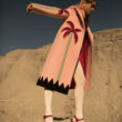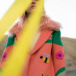 Impactan, sobre todo, los abrigos concebidos como grandes superficies de colores con fuertes contrastes que parecen salidos de un universo de cartoons y a los que se les añaden locuras como mangas y cuellos de pelo, por poner un ejemplo particularmente impresionante. Pero tampoco se pueden pasar por alto los volantes aflamencados aplicados incluso a una versión muy colorista del traje chaqueta en dos piezas, así como el uso de materiales como la lana de cashmere, el tul plumeti o las aplicaciones de brillantes y cristales Swarovski.