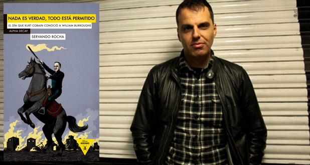 Este año 2014 viene marcado por dos celebraciones que, a priori, bien pueden parecer muy alejadas la una de la otra: por un lado, se cumplen cien años del nacimiento de William S. Burroughs, sin lugar a dudas uno de los escritores que más ayudaron (sin quererlo ni pretenderlo) a definir los parámetros de la postmodernidad literaria; pero también se cumplen veinte años de la muerte de Kurt Cobain, quien más que ayudar a definir ningún parámetro musical más bien fue el epítome de un nuevo modelo comercial basado en la actitud pretendidamente anti-comercial. Y aunque, como decíamos más arriba, a priori pueden parecer dos figuras alejadas la una de la otra, resulta que, tras la muerte del segundo, entre todos sus documentos se encontraron tres fotos en las que Burroughs y Cobain paseaban juntos, el uno al lado del otro. Esas fotos son la génesis de «Nada Es Verdad, Todo Está Permitido«, el nuevo libro de Servando Rocha que ahora publica Alpha Decay en nuestro país.