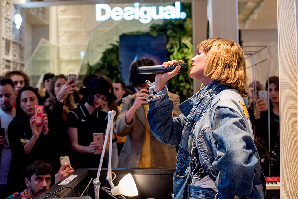 Pero, venga, dejemos de soñar con el futuro y centrémonos en el presente… Porque la verdad es que el eventazo de presentación de #aNewDesigual en Barcelona fue de ese tipo de ocasiones que recuerdas en el futuro y cuentas a los que vienen detrás como tu abuelo te explicaba a ti sus batallitas. Rollo: ¿te acuerdas de aquella vez que Brisa Fenoy actuó para solo 50 personas y no solo lo petó con «Jerico«, sino que incluso se marcó una versión en acústico de «Lo Malo«? O también del tipo: ¿tú estabas en aquel eventazo en el que hubo el mejor finger food y bebida sibarita mientras Candela Capitán nos ponía los pelos de punta con una coreografía puramente expresionista y la dj Anastasia Bengoechea (también conocida como Monstruo Espagueti) lo petaba en la mesa de mezclas?