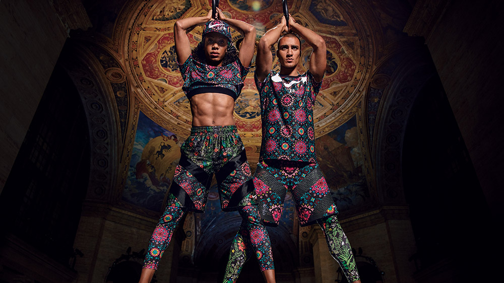 La primera colaboración atrae a un nombre tan codiciado como el de Riccardo Tisci, que cuelga por un momento su batín de director creativo de Givenchy para entregar a NikeLab una revisión de la ropa de entrenamiento. Su colección «NikeLab x RT: Training Redefined» localiza y explora dos tendencias muy concretas. Por un lado, el abanico de colores blancos y negros tan típicos en Tisci. Por el otro, una impactante yuxtaposición de estampados florales y caleidoscópicos, además de llamativos prints de estrellas y calaveras. Todo ello usando algunas de las tecnologías más punteras de Nike como Dri-FIT o Flyknit… Una maravilla, vamos.
