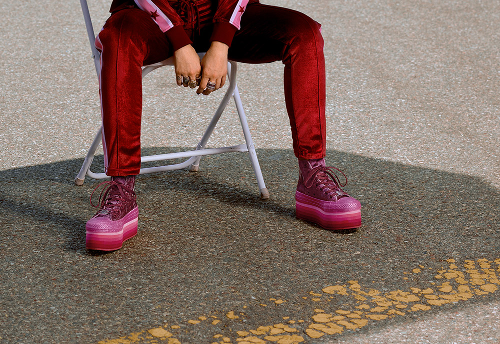 Esta tercera colección de Miley Cyrus para Converse está formada por un total de 19 piezas en las que predomina el color block y los prints homogéneos. Entre los materiales encontramos mezclas de terciopelo, glitter y vinilo. Y, como no podía ser de otra forma, vuelven a aparecer las ya clásicas plataformas de la artista, pero en nuevas versiones revisadas para la nueva temporada. ¿Significa esto que Miley se está integrando en el sistema? Ni mucho menos. Porque, al final, es que tampoco hace falta relacionar ser outsider con ir hecha un cuadro. Se puede vivir al margen de lo establecido y ser más elegante que el mismísimo mainstream. [Más información en la web de Converse]
