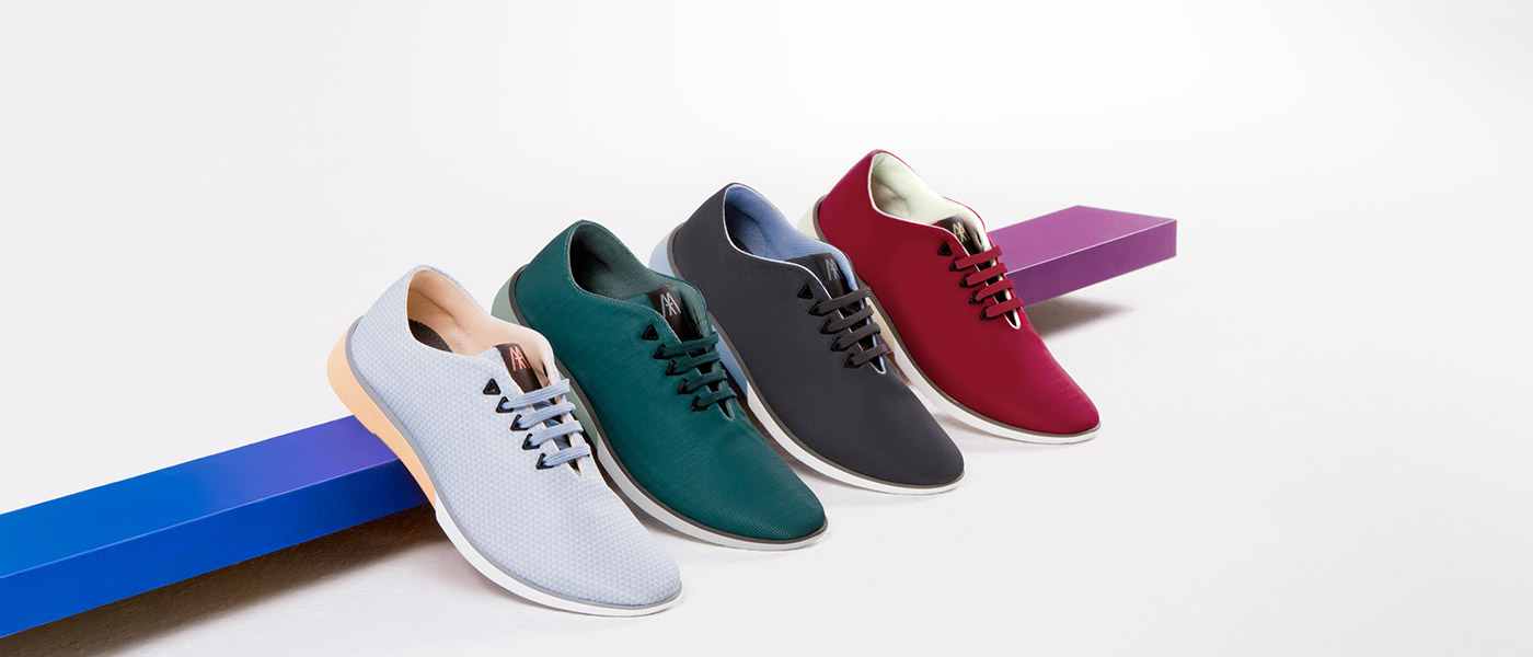 Ahora viene el dilema: ¿con cuál te quedas? La colección «Node» está formada por cuatro modelos diferentes: Maritime Green (con tejido verde y suela en tono blanco / verde clarito), Iridiscent Grey (con un tejido gris oscuro que contrasta con la suela en una mezcla de blanco y gris), Bloody Red (en el que el tejido granate completa a la perfección la suela en blanco / champagne) y Triangular Blue (con un estampado triangular de color azul y con la suela en blanco y naranja). Una cosa queda clara: nunca algo técnico fue tan seductor para el ojo. [Más información en la web de Muroexe]