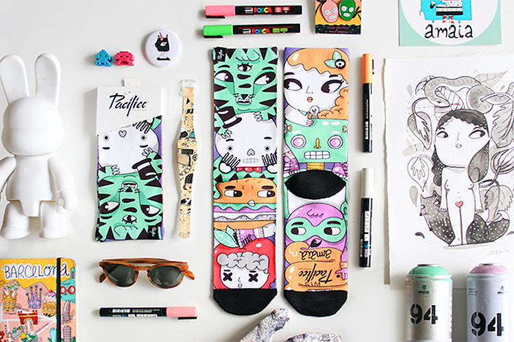 Y es que, de un tiempo a esta parte, desde Pacific & Co. han invitado a todo un conjunto de Guest Artists para que usen sus calcetines (siempre confeccionados en CoolMax y algodón, evidentemente) como verdaderos lienzos en blanco. Los resultados que hemos visto hasta el momento han sido una verdadera maravilla… Y la última en sumarse a la lista de invitados ilustres, Amaia Arrazola, no sólo ha mantenido el nivelón, sino que incluso lo ha elevado un poquito con un par de calcetines que son pura fantasía.