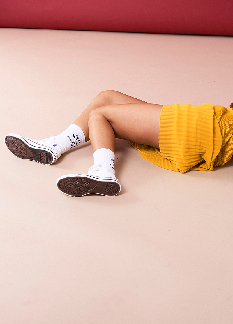A nosotros nos parece que los calcetines con parches de acid deberían estar en los armarios de todo el mundo a partir de ahora… Pero, ojito, porque el resto de la colección tiene todo un buen conjunto de lindezas que harán que estudies cómo ir enseñando calcetín continuamente pese a que nos encontremos en otoño y se imponga el pantalón largo. La colección lo merece, sobre todo porque todas las siluetas de «Aesthetics» están pensadas como una celebración del arte y la belleza sin olvidar la naturaleza como origen de todas las cosas.