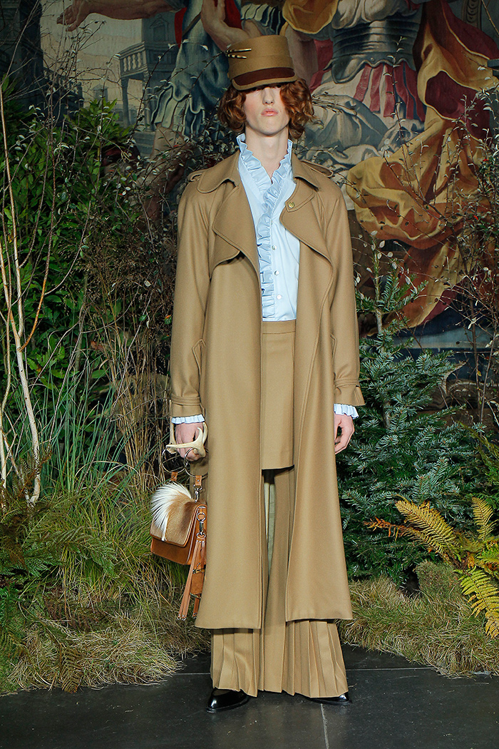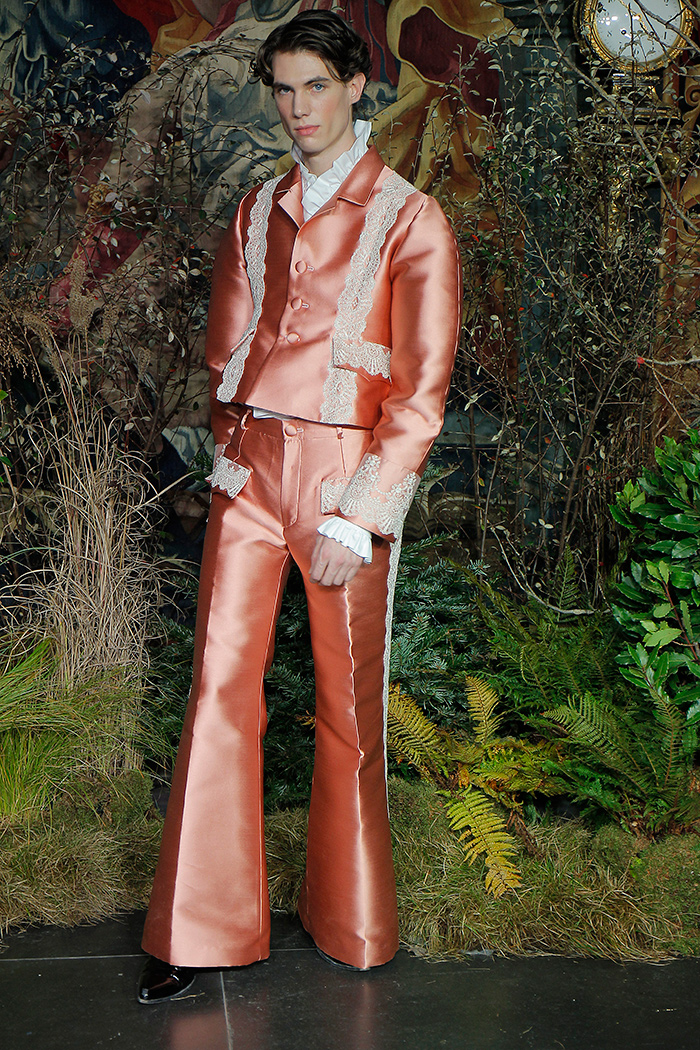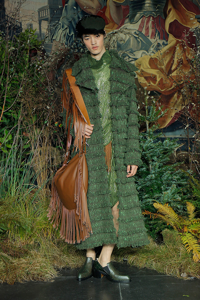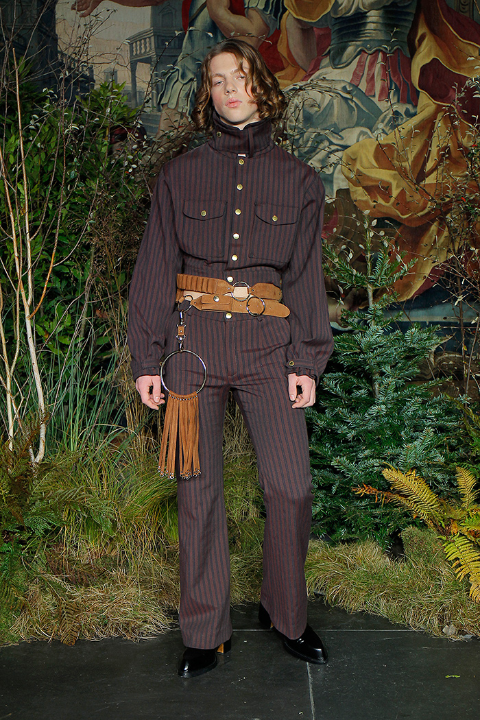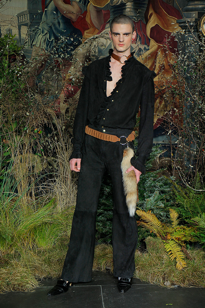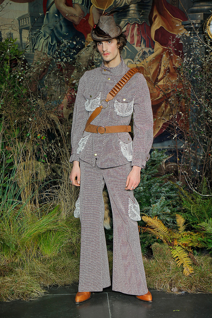Esta es la idea de «The Hunting«, pero aquí y ahora también hay que hablar de cómo esa idea ha llegado a la realidad… Y la verdad es que lo ha hecho con una colección que cualquiera podría decir que es puramente masculina (callando así las bocas de los que siempre son críticos), pero que realmente va un paso más allá y lleva la cuestión de género a un terreno de pura fantasía en la que la cacería de Palomo Spain se convierte en una especie de argumento de cuento infantil en el que los protagonistas no tienen ningún tipo de prejuicio a la hora de introducir en sus ropajes fascinantes detalles que las mentes de otro siglo (pasado) se empeñarán en identificar como femeninos.