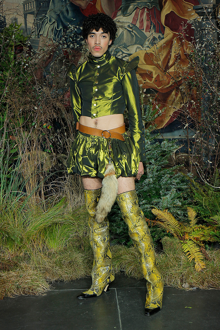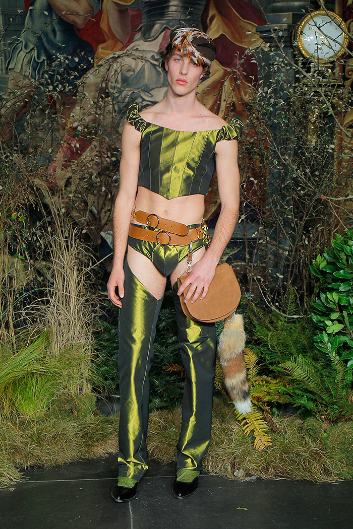 Rizando el rizo, Alejandro Gómez Palomo ha colaborado con Tolentino (para engalanar a todos sus modelos con una colección de sombrerería realmente impactante) y con Arpent Studio (en todo un conjunto de zapatos que parecen salidos de una leyenda medieval). Lo mejor de todo es que «The Hunting» alucina no como respuesta a las críticas que siempre se le achacan a Palomo Spain, sino más bien como la confirmación definitiva de que este hombre juega en una liga estratosférica. [Más información en la web de Palomo Spain]