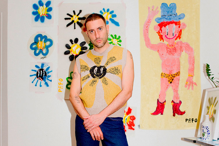 Hay imaginarios que están destinados a encontrarse y que, por lo tanto, cuando finalmente se encuentran, lo hacen de la forma más natural y orgánica posible. Es el caso, por ejemplo, de Carne Bollente y Pepo Moreno… Por un lado, la marca portuguesa que lleva años diseminando por el mundo su mensaje de positividad sexual a base de prêt-à-porter colorido, confortable e inclusivo. Por el otro, el artista con un imaginario de pop esperpéntico (¿esperpéntipop?) e irónico que ha sabido tocar la fibra sensible de las redes sociales con sus creaciones.