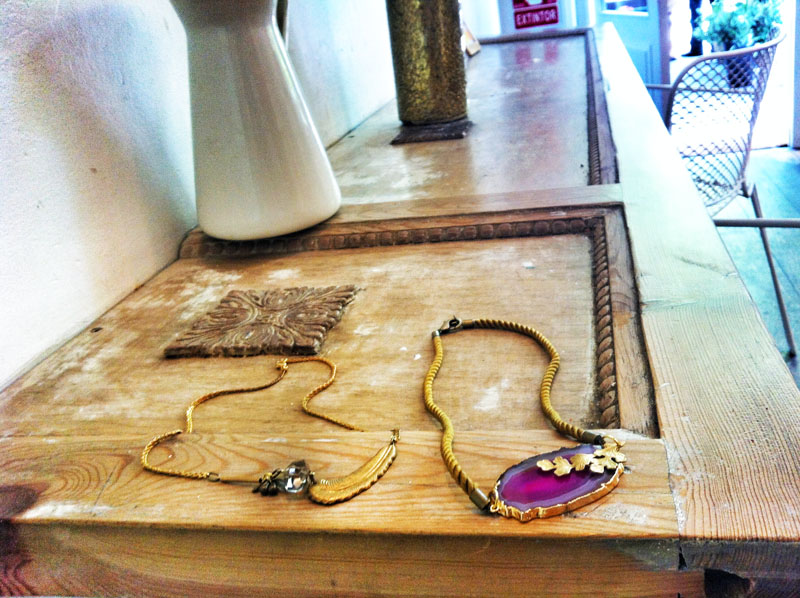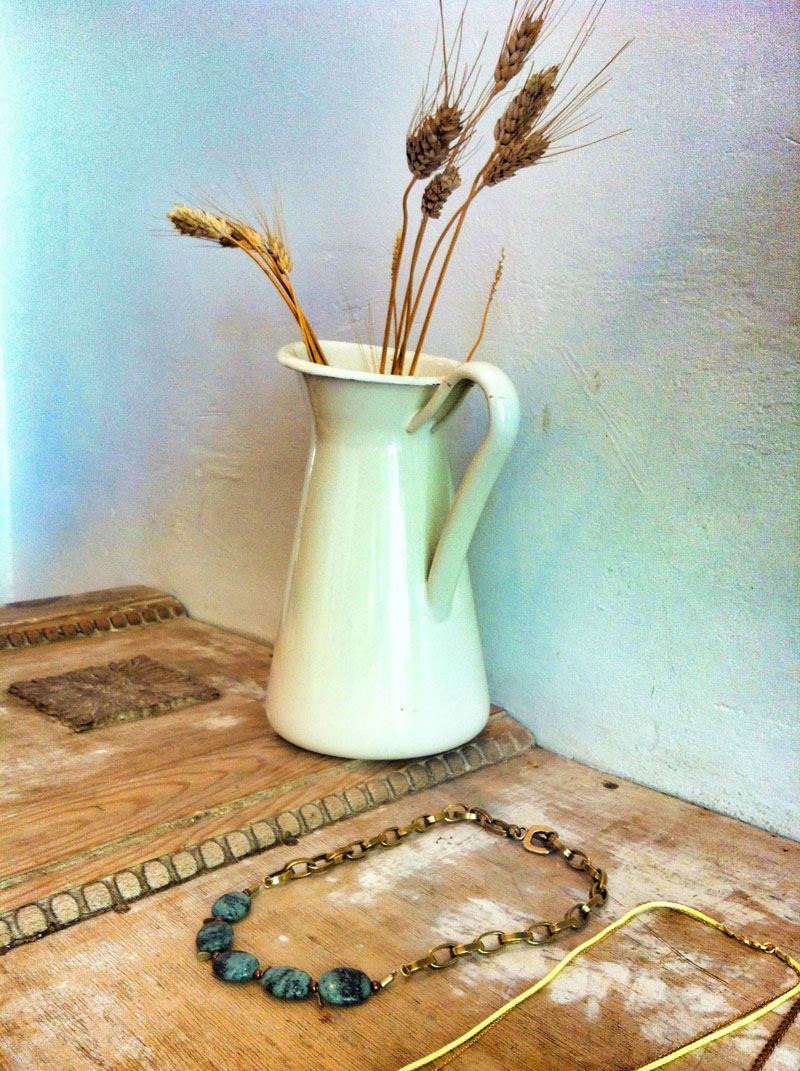 Háblanos un poco de la colección de este verano… La he creado basándome en dos tendencias: la primera, «Western«, tiene una marcada inspiración en Los Ángeles, que creo que es una ciudad que tiene mucho estilo y muy marcado y que siempre me ha llamado la atención. Esta colección está compuesta de piedras grandes (sigo muchos blogs y usuarios de Etsy de allí, donde llevan cosas muy grandes y un rollo neo hippy muy fuerte con cuarzos tornasolados, piedras que brillan, inspiración navajo con muchas turquesas y platas). Es algo que quiero trabajar en el futuro: el verdadero estilo LA aún no he podido aplicarlo porque aún no ha llegado aquí con fuerzas y el público de aquí necesita ver las cosas primero en las tiendas para habituarse a ello. La otra, que se llama «Seine«, es de inspiración más parisina, es más delicada y juega mucho con los colores pastel. Son dos estilos que no tienen nada que ver entre sí pero que me gustan mucho.