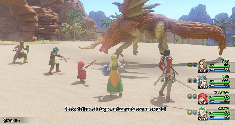 En el caso concreto de esta decimoprimera entrega de la saga, el protagonista es lo suficientemente neutro como para que volquemos sobre él nuestra propia personalidad, mientras que en el grupo de amigotes se cuentan personajes tan magnéticos como el ladrón Erik, las hermanas gemelas Verónica y Serena (aunque una de ellas ha sido convertida en niña por una extraña maldición), el abuelo del protagonista Rob, la exótica Jade y, por encima de todos, un Servando que no puede explicarse de otra forma que a través del gusto de los nipones por esos personajes de sexualidad dudosa que, en este caso, parece un concursante de «RuPaul’s Drag Race«. (Un toque de color que, por otra parte, se agradece si lo contraponemos a la seriedad extrema de «Final Fantasy XV» en su diseño de personajes.)