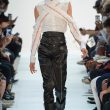 Para empezar, los modelos (hombres y mujeres… y todas las áreas intermedias, porque ya se sabe que el género siempre cobra un nuevo significado post-gender en el caso de Hood by Air) llevaban la cara y el pelo embadurnados en diferentes substancias plenamente reconocibles como los fluidos corporales habituales cuando uno utiliza una herramienta como PornHub. No sólo eso: la banda sonora estaba compuesto por gemidos y sonidos corporales, la invitación era una versión porno de cualquier portada de «El Club de las Niñeras«, hubieron varias prendas básicas en las que se imprimió el logo del portal online y, sobre todo, en el desfile brilló una especie de mezcla entre camisa de fuerza y compañera ideal para limpiar el estropicio que sigue a toda sesión de onanismo.