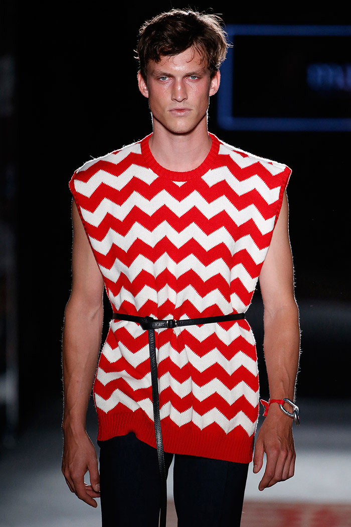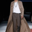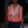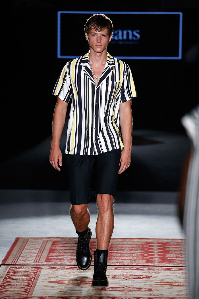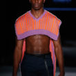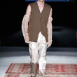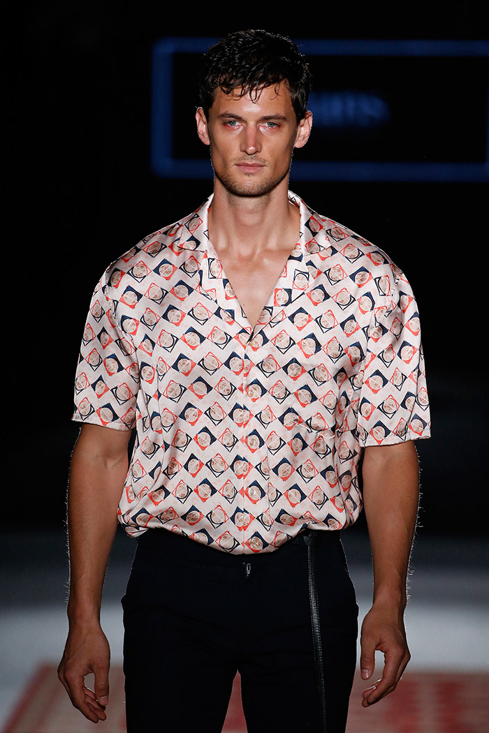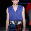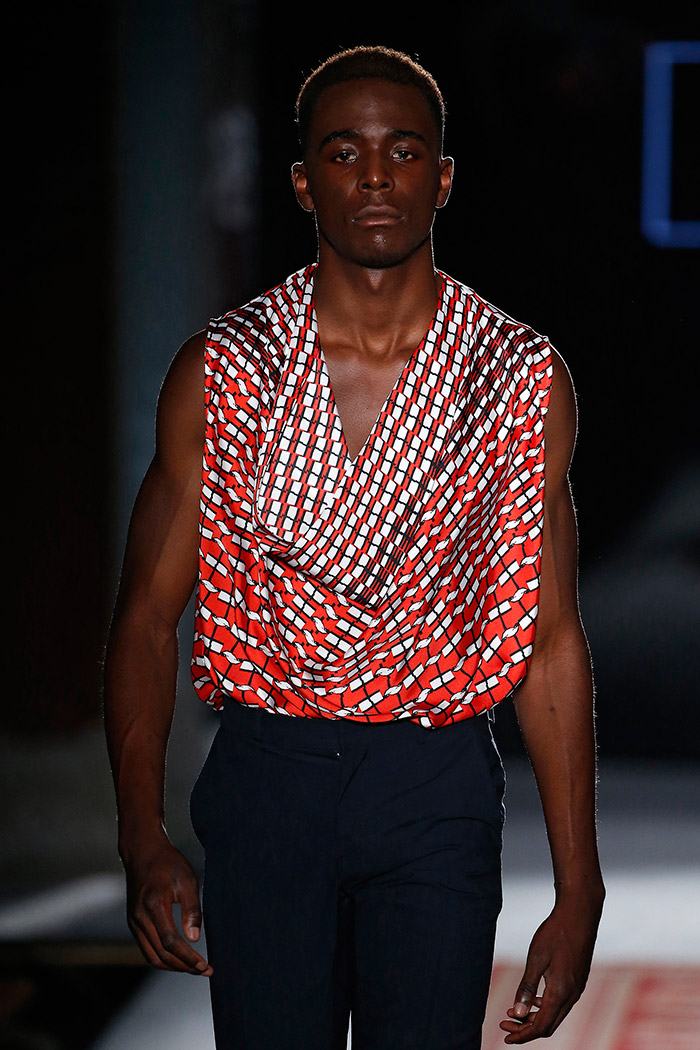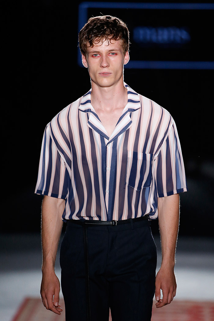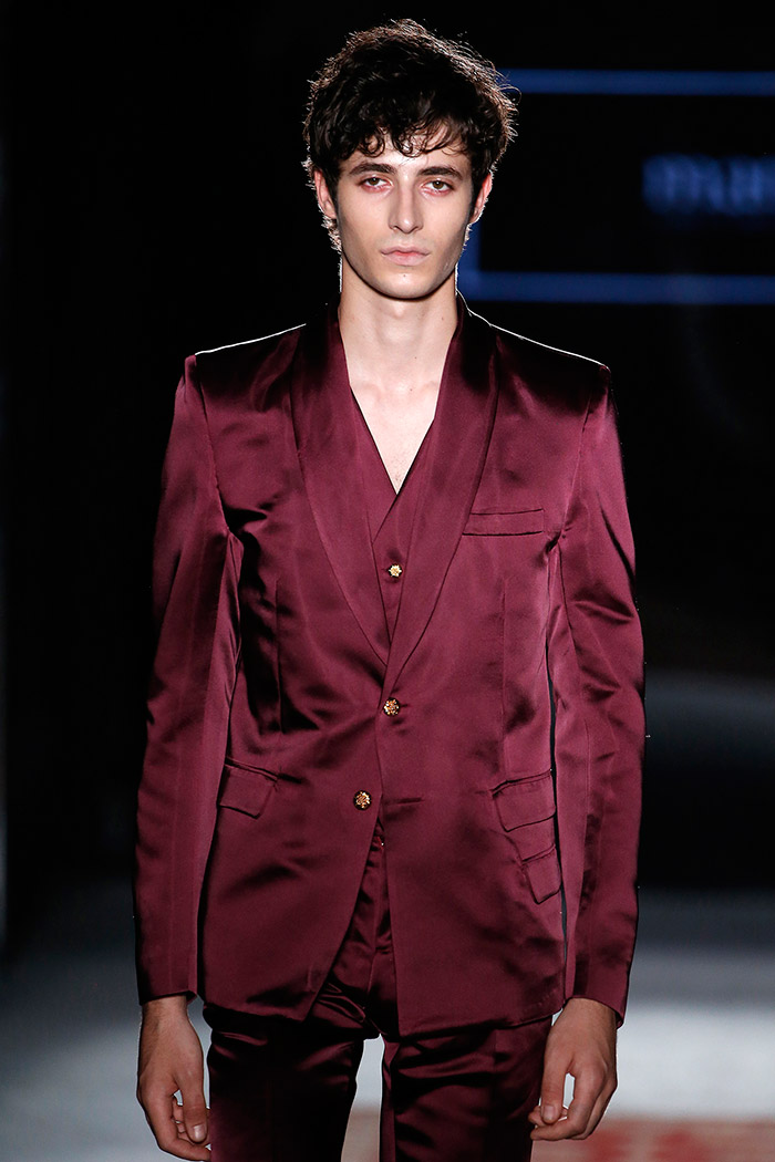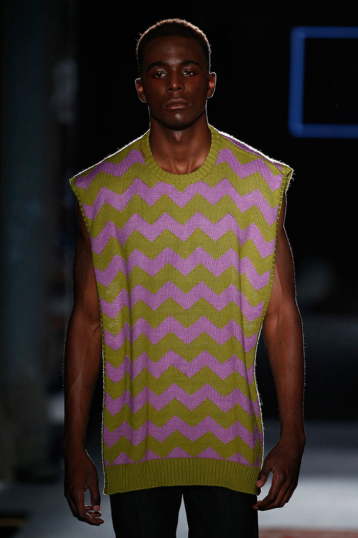 El rastro de las raves queda en el maquillaje en los ojos enrojecidos de los modelos pero, en lo concerniente a este uniforme clubber, la base primordial es la sastrería en una aproximación que toma a Thom Browne y sube las apuestas por la vía de la liberación del formato tres piezas habitual en el traje: aquí un «traje» puede vestir sin necesidad de chaqueta, substituyéndola por un chaleco en versión maximalista o por una camiseta sin mangas que conserva el alma del traje simple y llanamente en el tejido. Las prendas de punto y de sporstwear aparecen en la colección como puntos de fuga que incluso dejan a la vista partes desnudas del cuerpo masculino. Los abrigos de Mans Concept & Menswear llegan hasta el suelo y caen con una feminidad que se introduce en el resto de la colección como un virus empeñado en socavar la masculinidad del siglo XX y abrirle paso hacia el siglo 21.