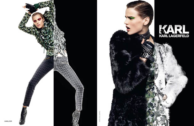 Como no podía ser de otra manera, toda la colección ha sido fotografiada por él mismo y también se ha encargado de escoger personalmente a los protagonistas, los modelos Anja Rubik, Saskia de Brauw, Sui He y Baptiste Giabiconi. Karl, como siempre, como Juan Palomo, que él se lo diseña, se lo escoge y se fotografía. Más «apañao» él…